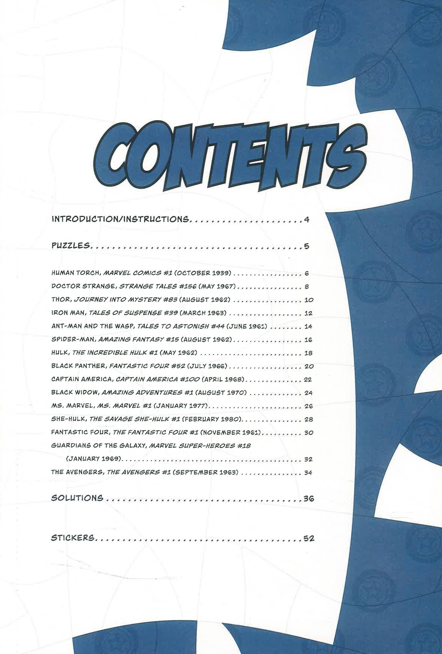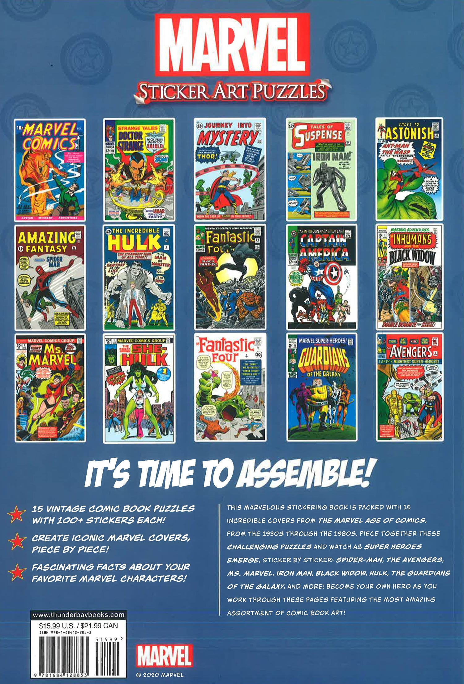 Each of the 15 sticker puzzle challenges in this book features full-color art of vintage Marvel comic book covers. When you're done fitting the 100-plus sticker shapes into a tessellated grid, you'll have a glossy art poster to frame and hang on your wall. Comic book fans and puzzle enthusiasts will enjoy hours of puzzling fun with this book of iconic Marvel covers and characters.