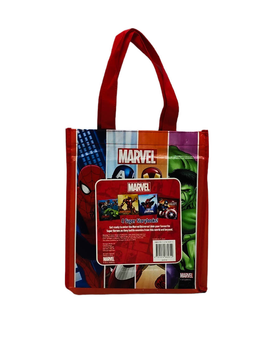 Join your favourite Marvel super heroes for some action-packed fun with this cool book bag filled with 4 awesome storybooks.