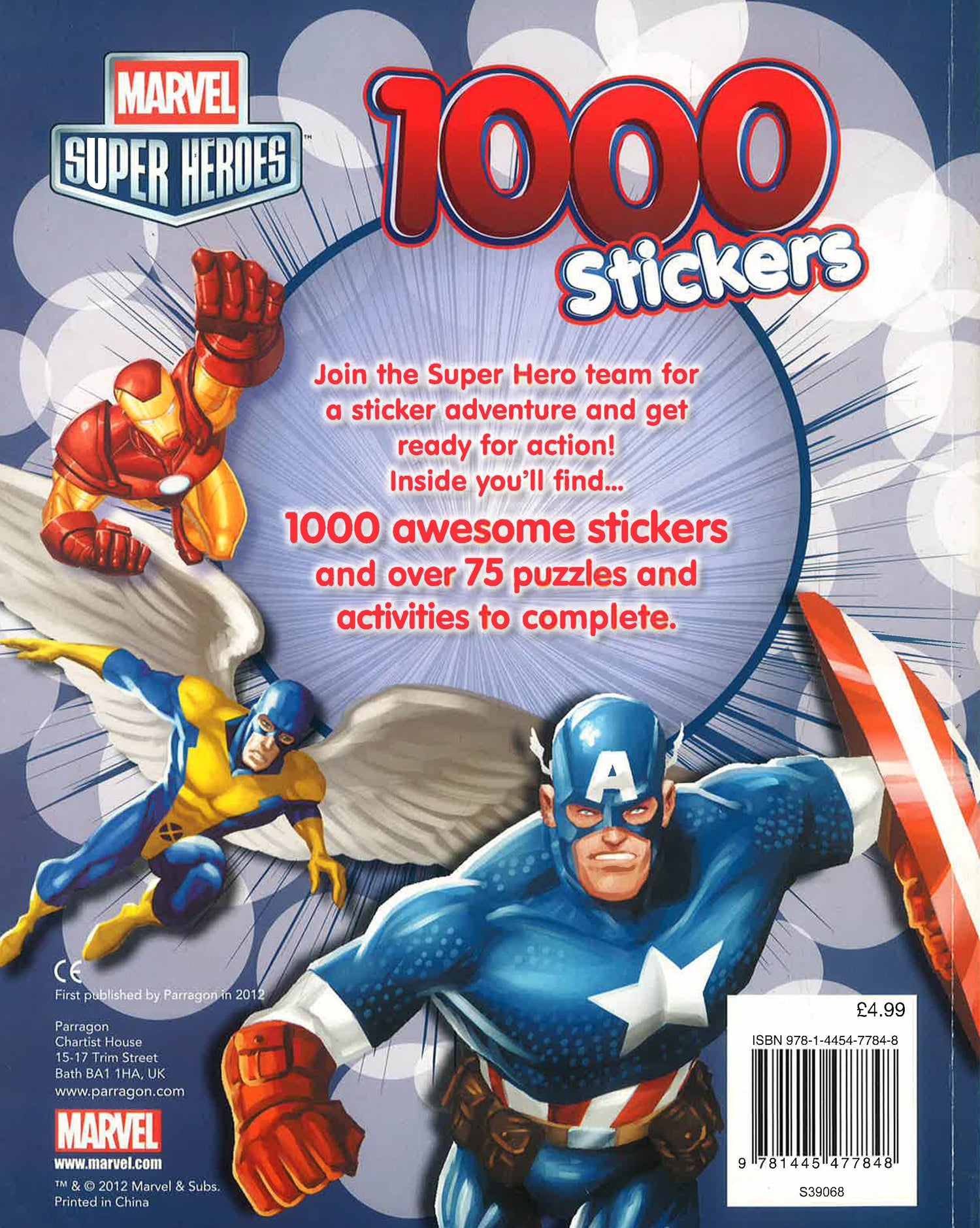 Marvel Super Heroes' combines Marvel's most popular and iconic characters and takes children into a world of fun and action. Packed with super hero puzzles, games and fun colouring pages, the exciting text helps to bring the special Marvel Super Heroes world to life. Printed in greyscale, children can be creative and use the sitckers to add a splash of colour to each page.