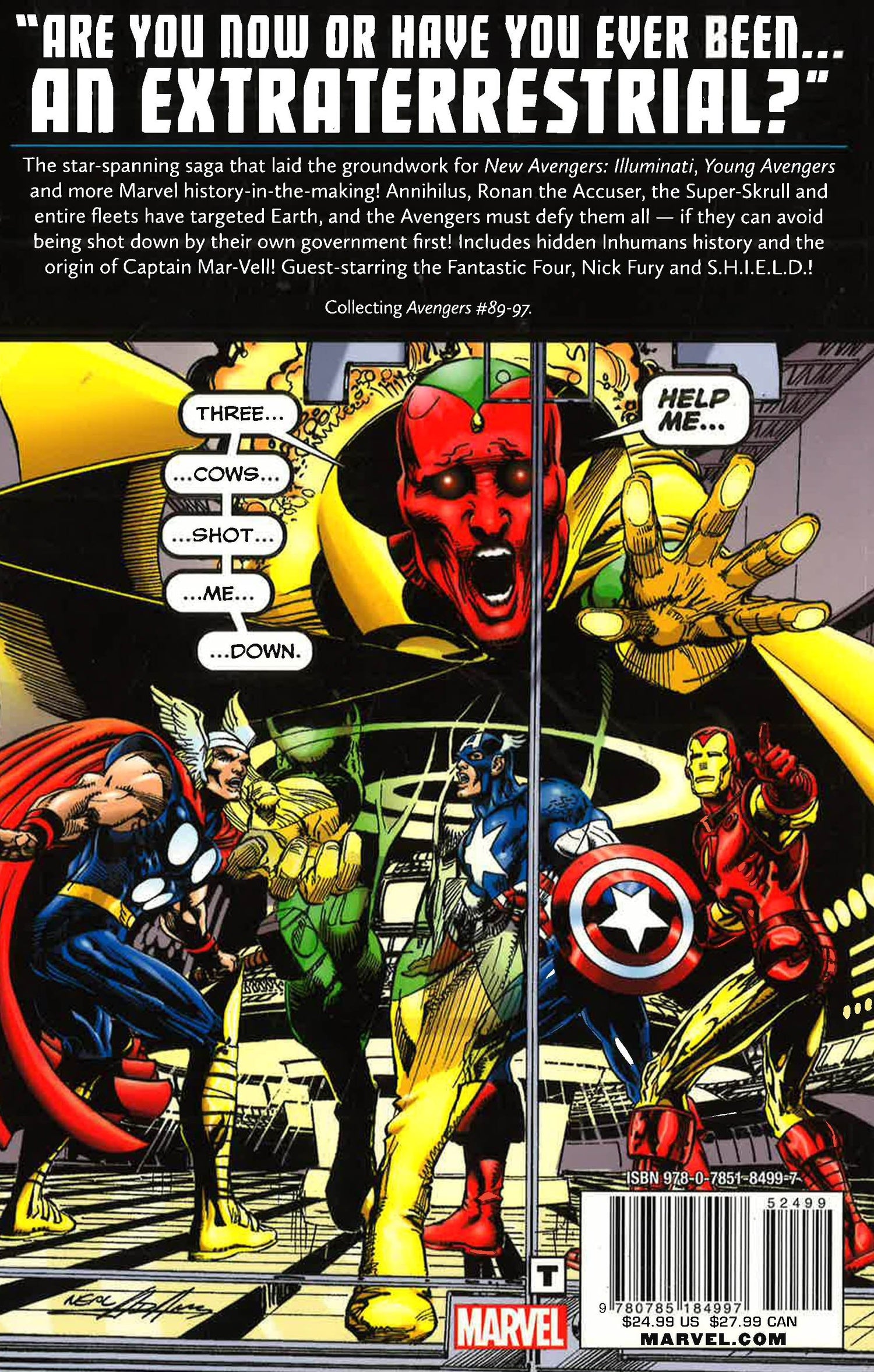 A conflict of star-spanning proportions - with Earth caught in the crossfire! For those eternal intergalactic enemies, the merciless Kree and the shape-changing Skrulls, have gone to war, and our planet is situated on the front lines! Can Earth's Mightiest Heroes, the Avengers, bring about an end to the fighting before humanity becomes a casualty of war? And what good are even a dozen super-powered champions against the vast military machines of two of the great empires of the cosmos? The key to victory lies with the expatriate Kree Captain Mar-Vell...and his human host, honorary Avenger Rick Jones! Featuring the trend-setting artwork of Neal Adams, the Kree/Skrull War is universally acknowledged as one of the finest and most important sagas in the Marvel canon.