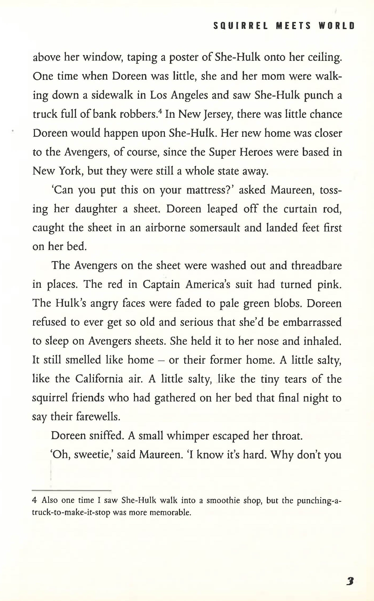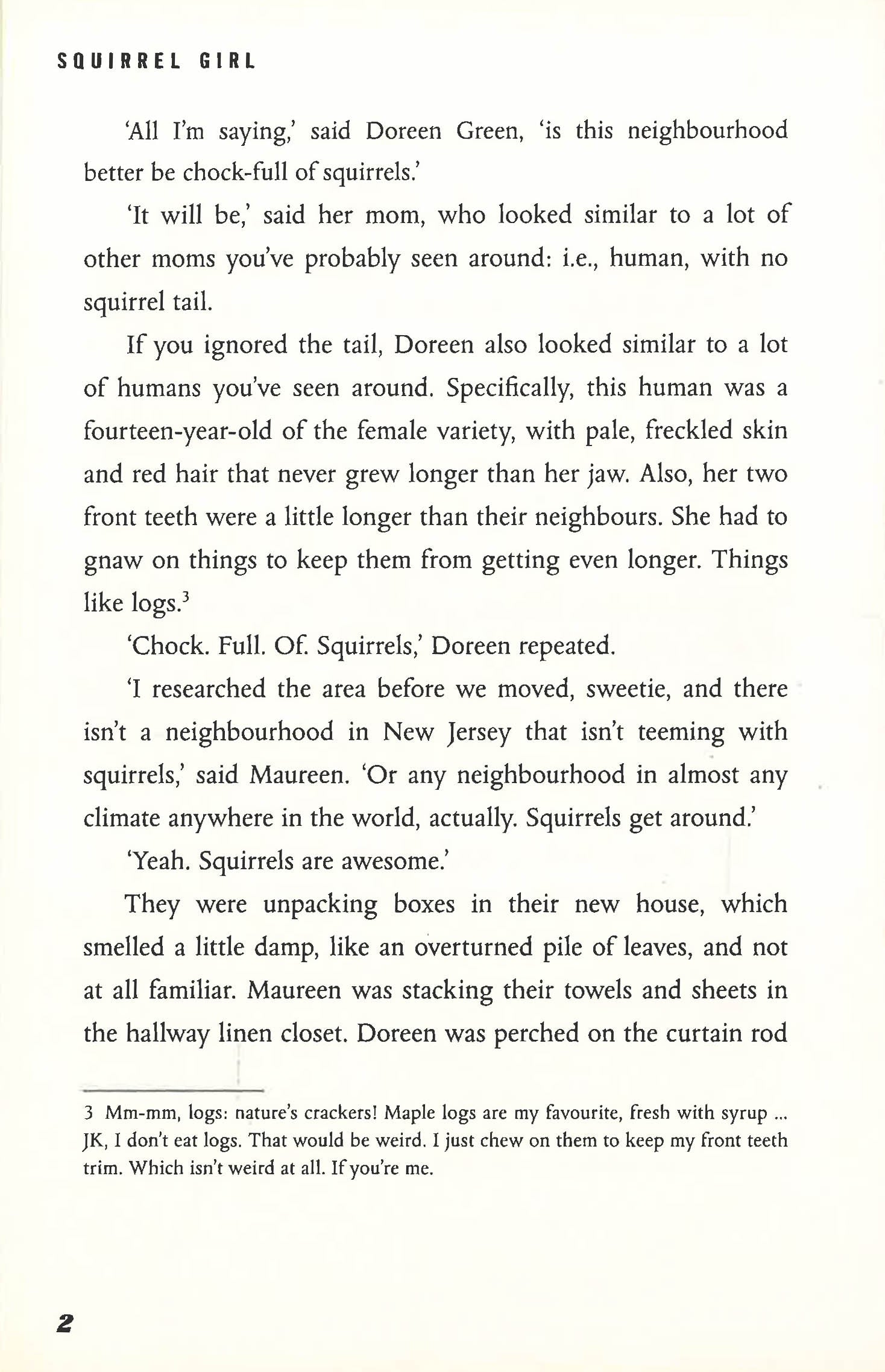 Meet Doreen Green, also known as The Unbeatable Squirrel Girl! An exciting and original super hero novel written by New York Times best-selling authors Shannon Hale and Dean Hale! In Shady Oaks, fourteen-year-old Doreen Green saves cats from trees, keeps the sidewalks clean and dissuades vandalism ... all while keeping her fluffy tail and squirrel powers a secret! But when a real-life Super Villain steps out of the shadows and declares Squirrel Girl his archenemy, can Doreen balance being a teenager AND a Super Hero? Or will she go ... NUTS? Note: this is not a graphic novel.