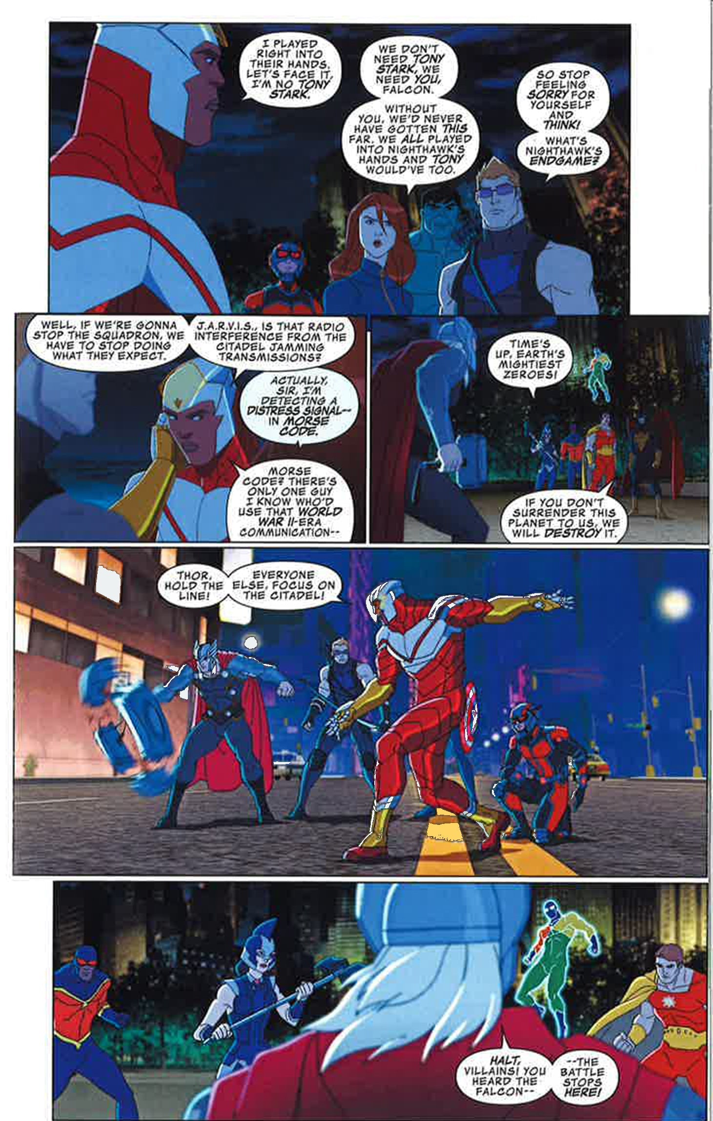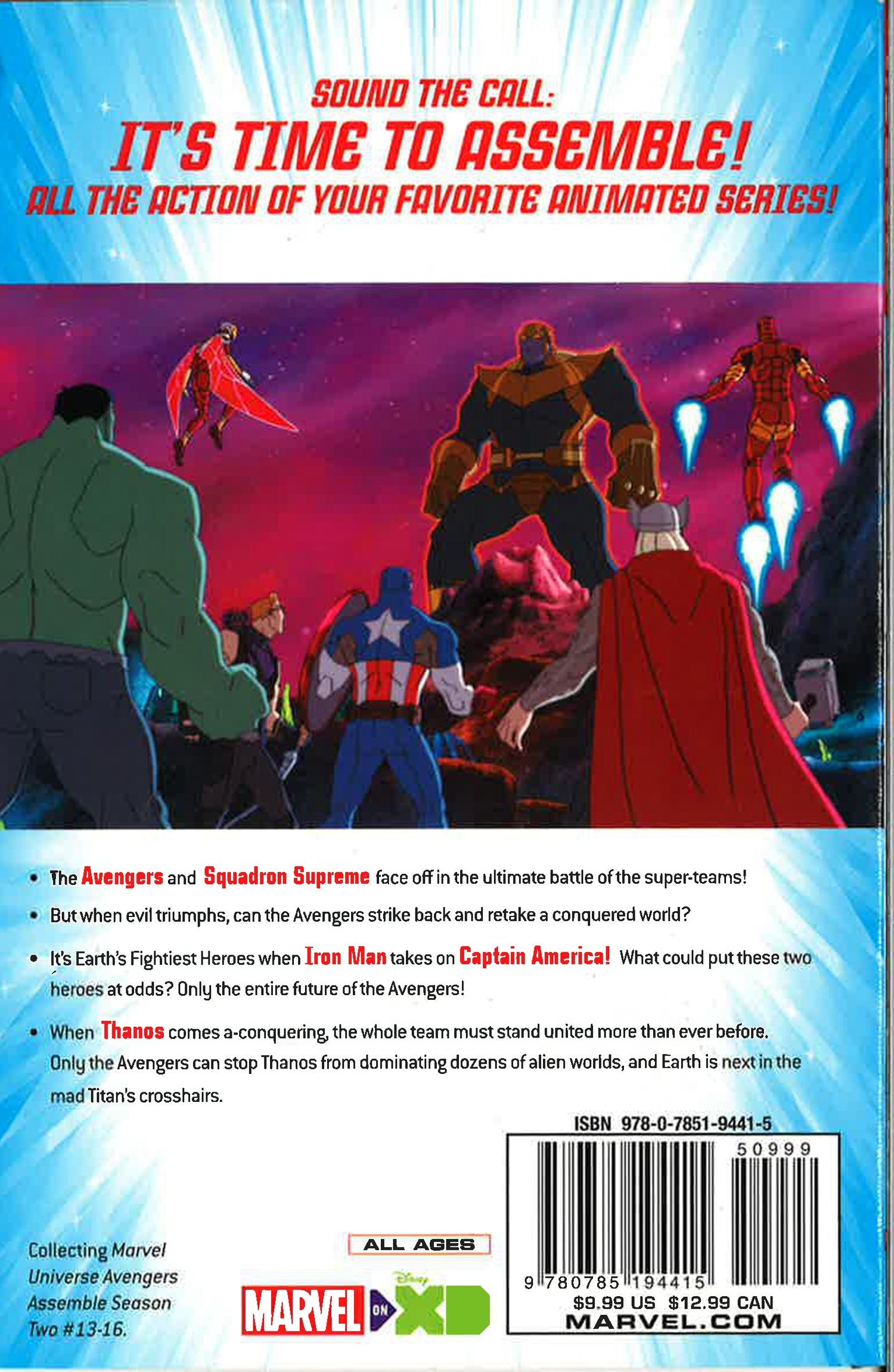The Avengers return for an all-new volume of evil smashing! First, it's the battle of the super-teams when the Earth's Mightiest Heroes take on Squadron Supreme. Then, conflict between Iron Man and Captain America threaten the team from within, just in time for an encounter with THANOS OF TITAN! Now more than ever, Earth's Greatest Heroes must unite, so sound the call!