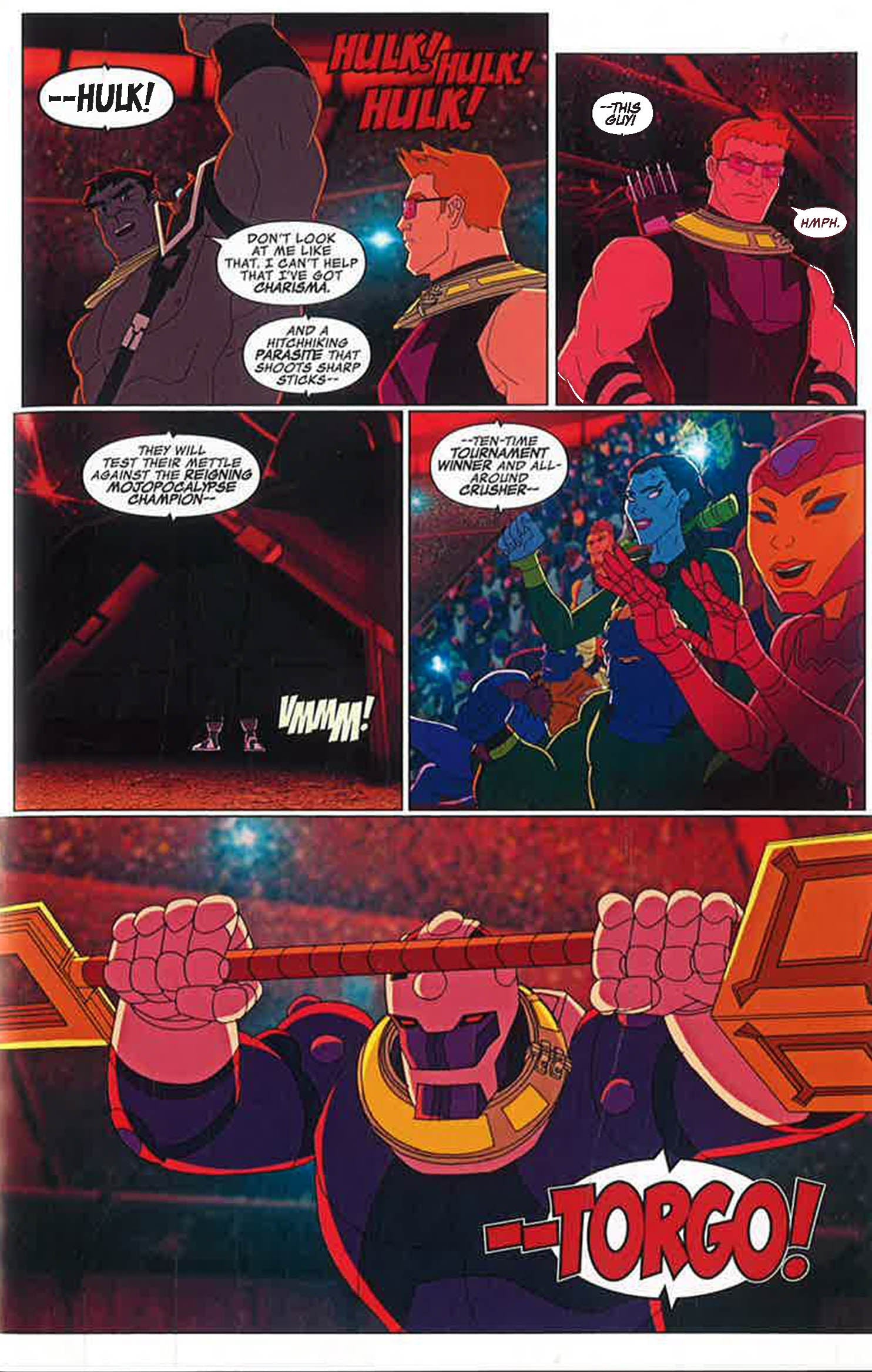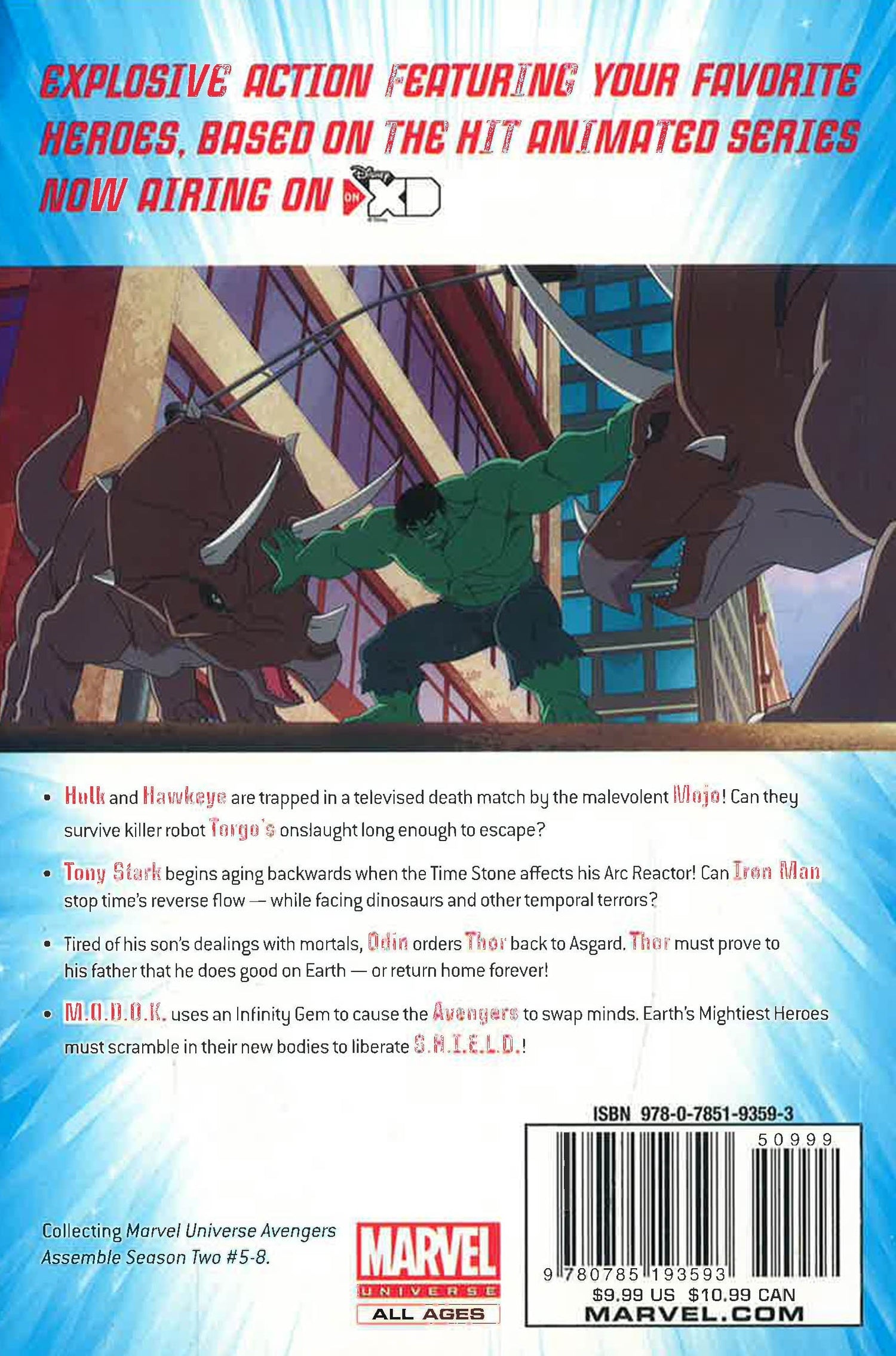 THE AVENGERS return for an all-new volume of evil smashing! Hulk and Hawkeye have been trapped in a televised deathmatch by the nefarious Mojo! Can they survive the onslaught of killer robot Torgo long enough to escape?
