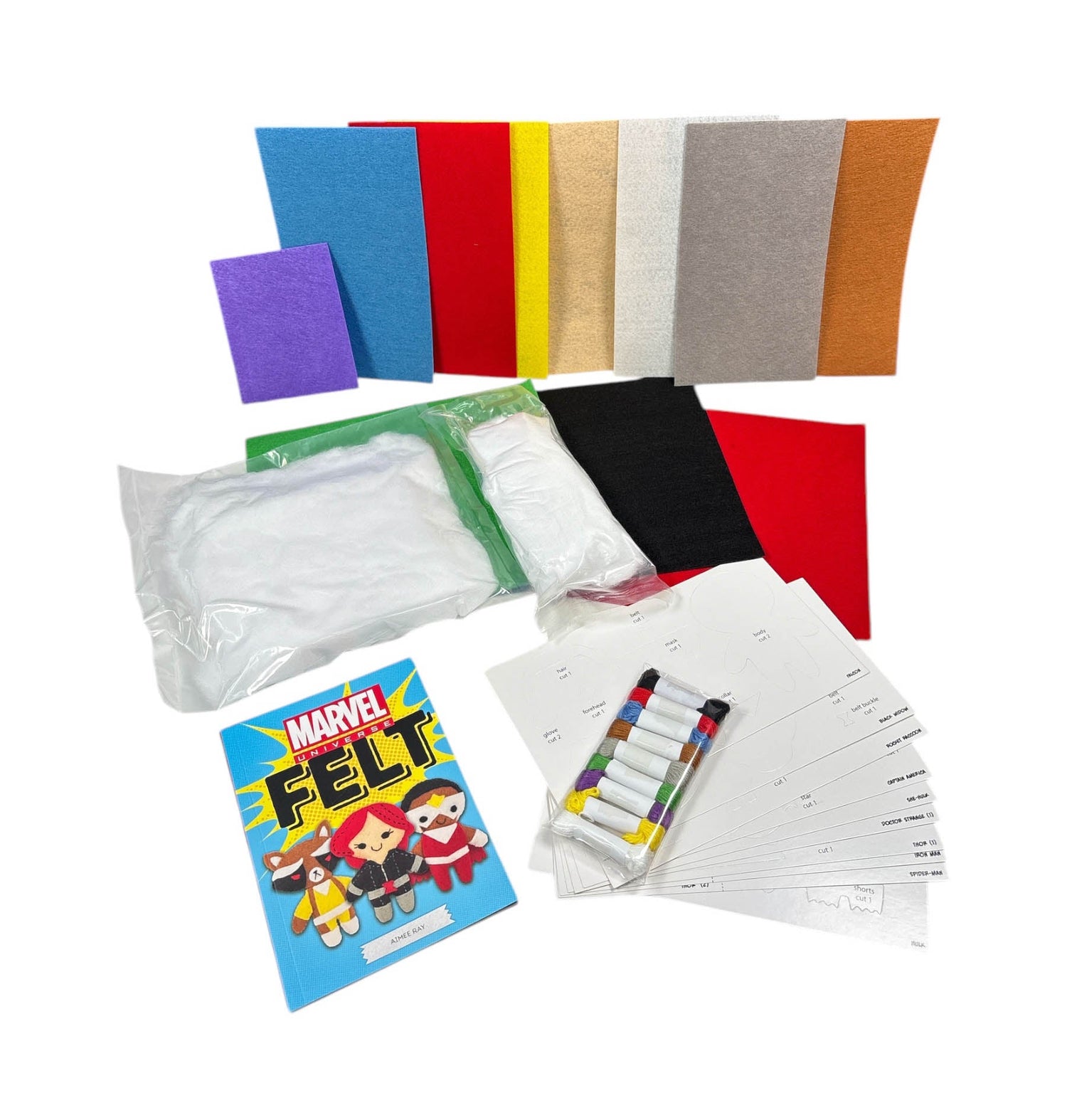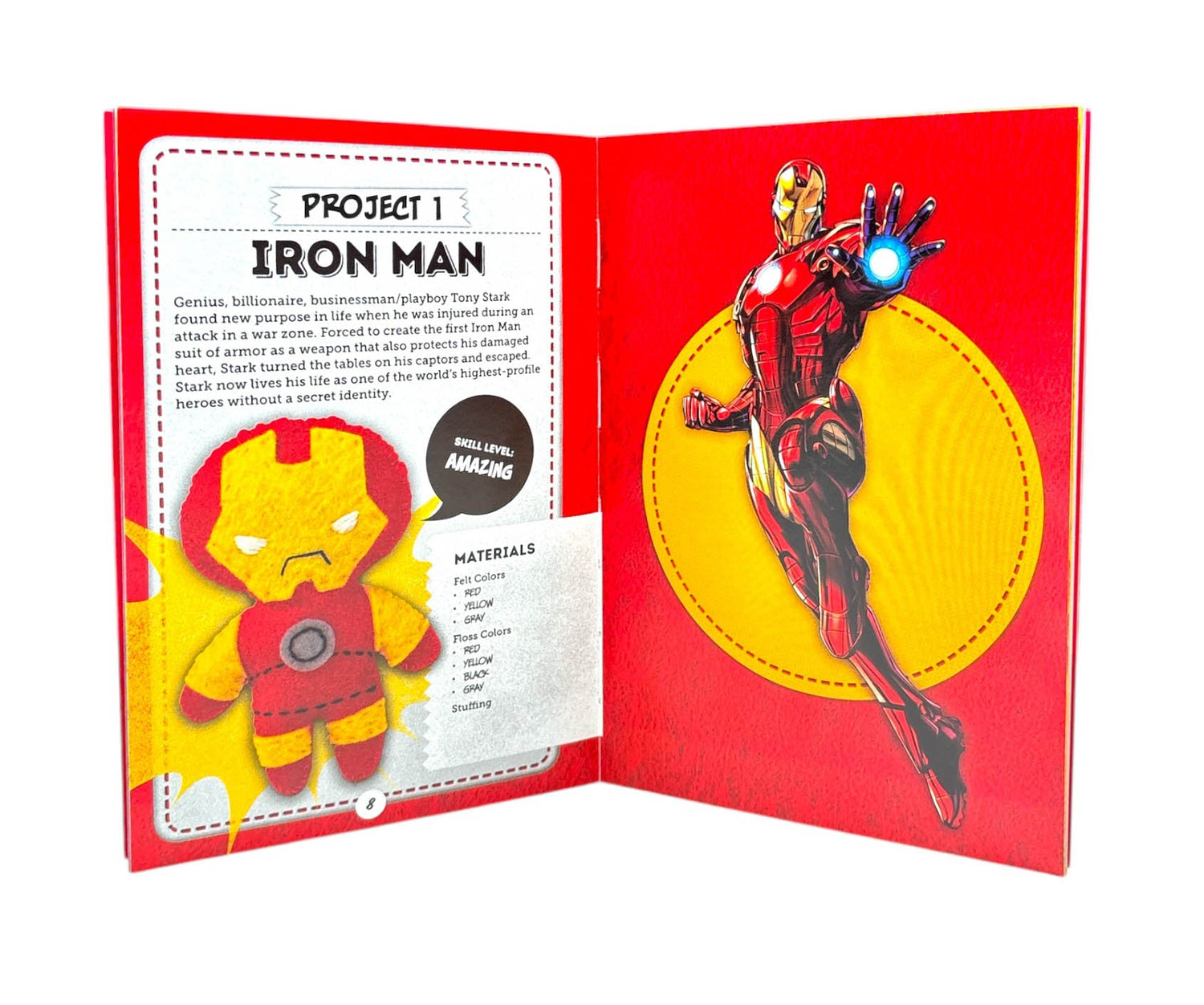 Stitch together 10 of the world's mightiest, most adorable superheroes to save your crafting space! The 48-page instruction book has step-by-step directions and color photos to help you bring these characters to life. Die-cut templates, felt, stuffing, embroidery floss, and a needle are all included so you can make Iron Man, Black Widow, Captain America, and seven other champions of justice. Dive into the Marvel Universe with these fun, collectible characters!