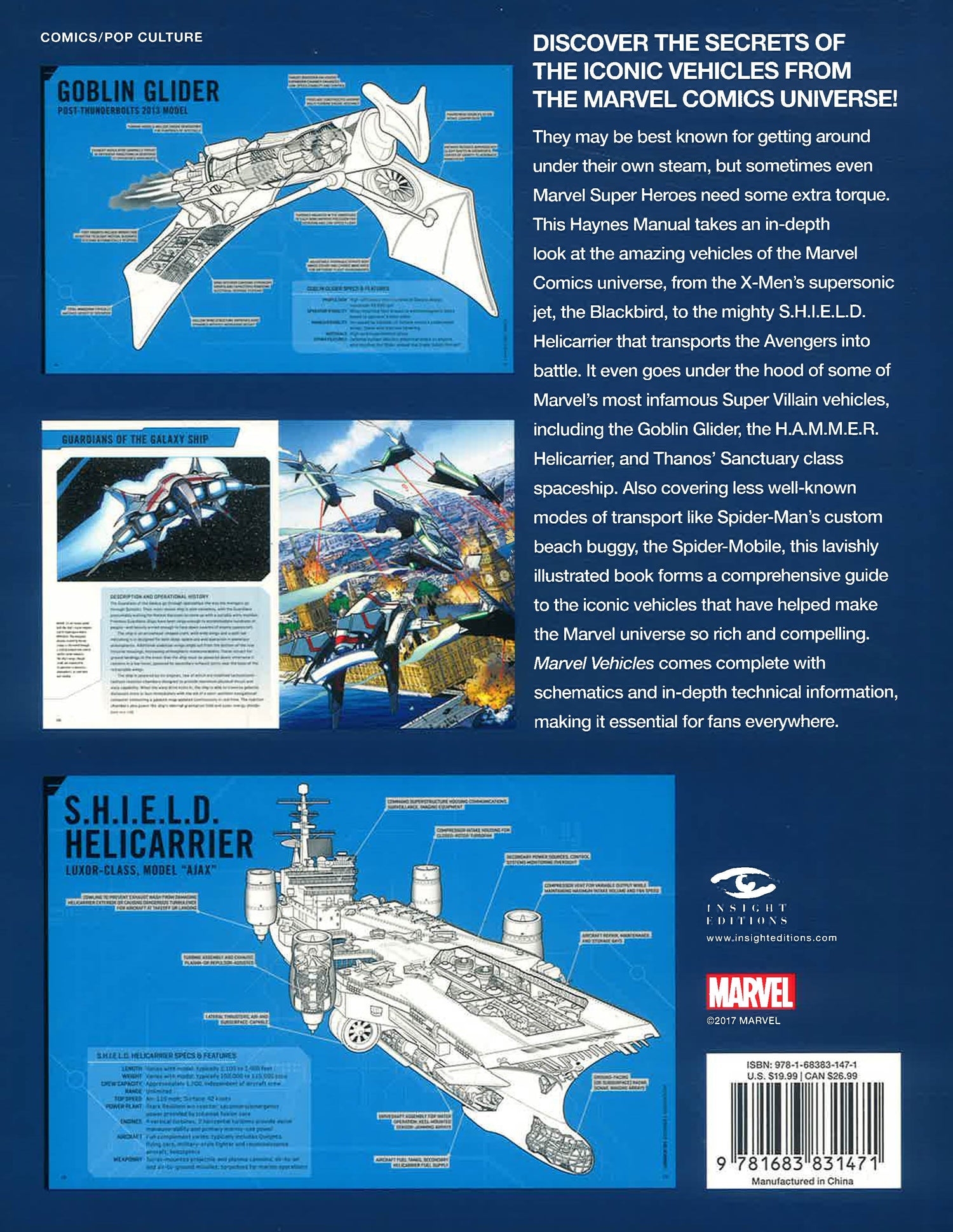 They may be best known for getting around on their own steam, but sometimes even Marvel Super Heroes need some extra torque. This Haynes Manual takes a look at the amazing vehicles of the Marvel Comics universe, from the X-Men's supersonic jet, The Blackbird, to the mighty Helicarrier that transports the Avengers into battle and the Green Goblin's preferred method of travel, the Goblin Glider. Also covering less well-known modes of transport like Spider-Man's custom beach buggy, the Spider-Mobile, this lavishly illustrated book forms a comprehensive guide to the iconic vehicles that have helped make the Marvel Universe so rich and compelling. Marvel Vehicles: Owner's Workshop Manual is now available in paperback format and comes complete with schematics and in-depth technical information, making it essential for Marvel fans everywhere.