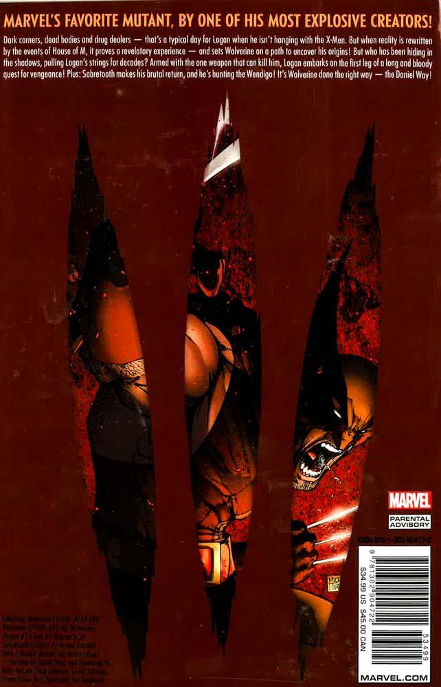 Marvel's favorite mutant by one of his most explosive creators! Dark corners, dead bodies and drug dealers - that's a typical day for Logan when he isn't hanging with the X-Men. But when reality is rewritten by the events of House of M, it proves a revelatory experience - and sets Wolverine on a path to uncover his origins! But who has been hiding in the shadows, pulling Logan's strings for decades? Armed with the one weapon that can kill him, Logan embarks on the first leg of a long and bloody quest for vengeance! COLLECTING: WOLVERINE (1988) 187-189; WOLVERINE (2003) 33-40; WOLVERINE: ORIGINS 1-5, 1 DIRECTOR'S CUT; SABRETOOTH (2004) 1-4; MATERIAL FROM I (HEART) MARVEL: MY MUTANT HEART