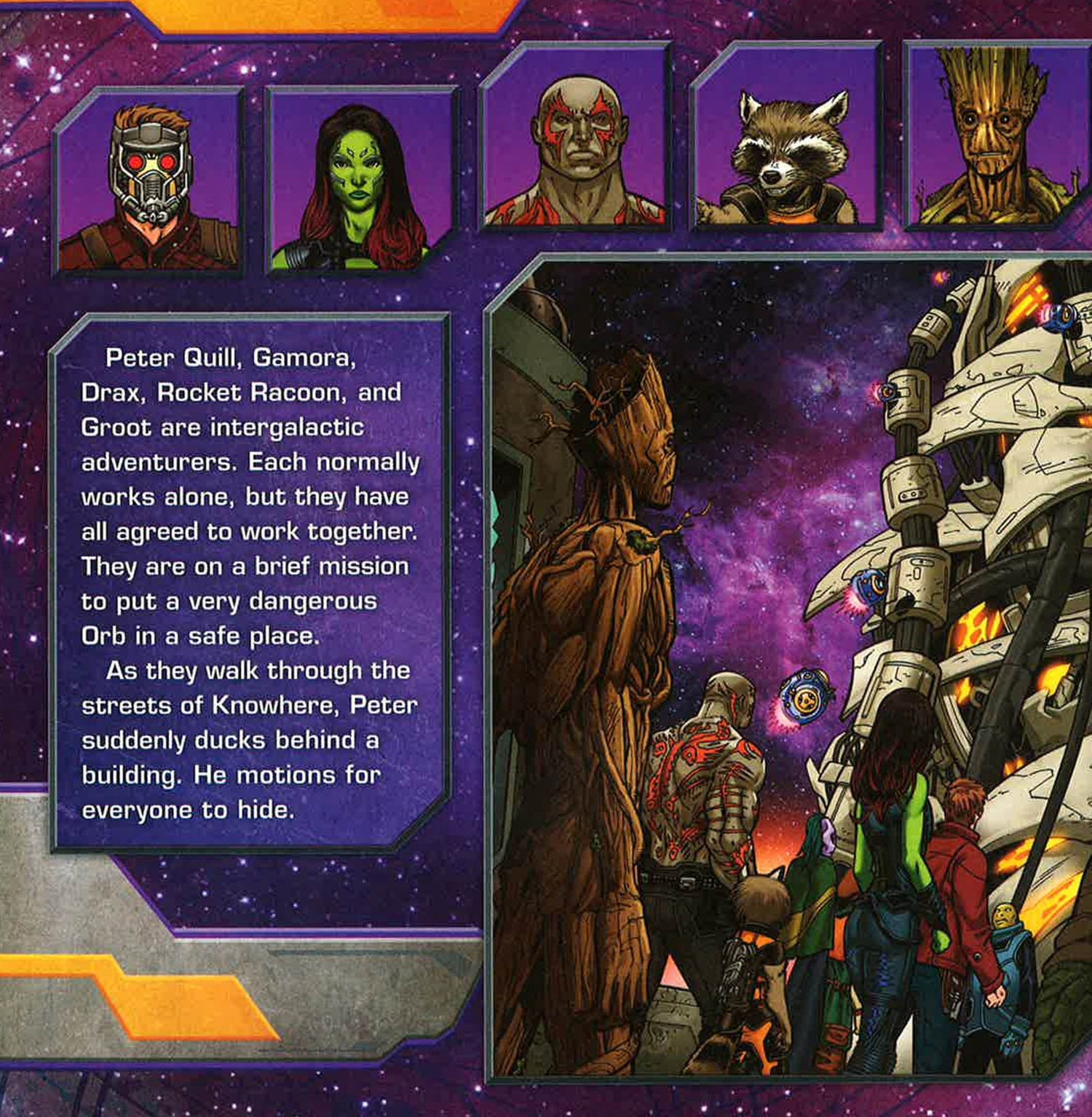 An action-packed, epic space adventure, Marvel's Guardians of the Galaxy tells the story of a group of cosmic misfits--Star-Lord, Gamora, Drax the Destroyer, Rocket Raccoon, and Groot--who band together to protect a mysterious orb against Ronan, a powerful villain with ambitions that threaten the entire universe.
