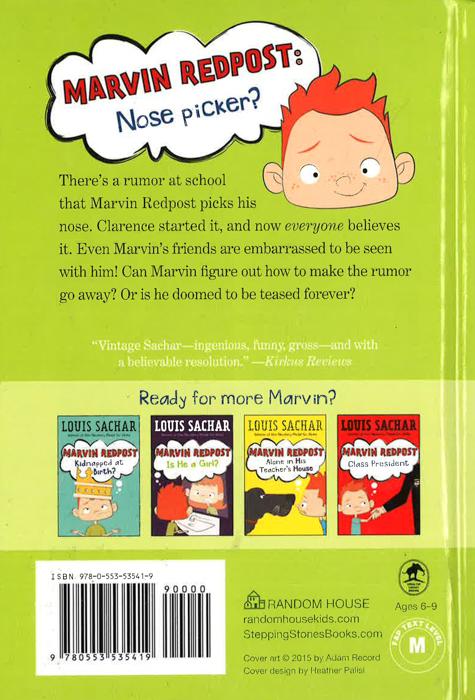 This sidesplitting chapter book in Newbery Honor-winning and bestselling author Louis Sachar's Marvin Redpost series takes on rumors and teasing. There's a rumor at school that Marvin Redpost picks his nose. Clarence started it, and now everyone believes it. Even Marvin's friends are embarrassed to be seen with him! Can Marvin figure out how to change everyone's mind? Or is he doomed to be teased forever?