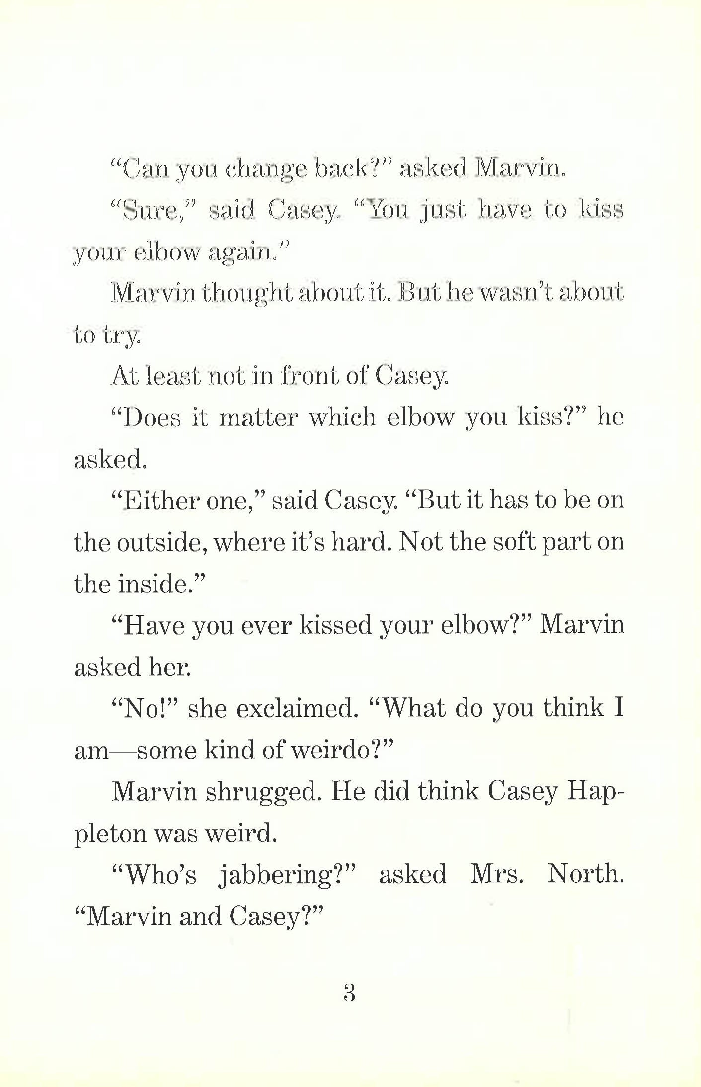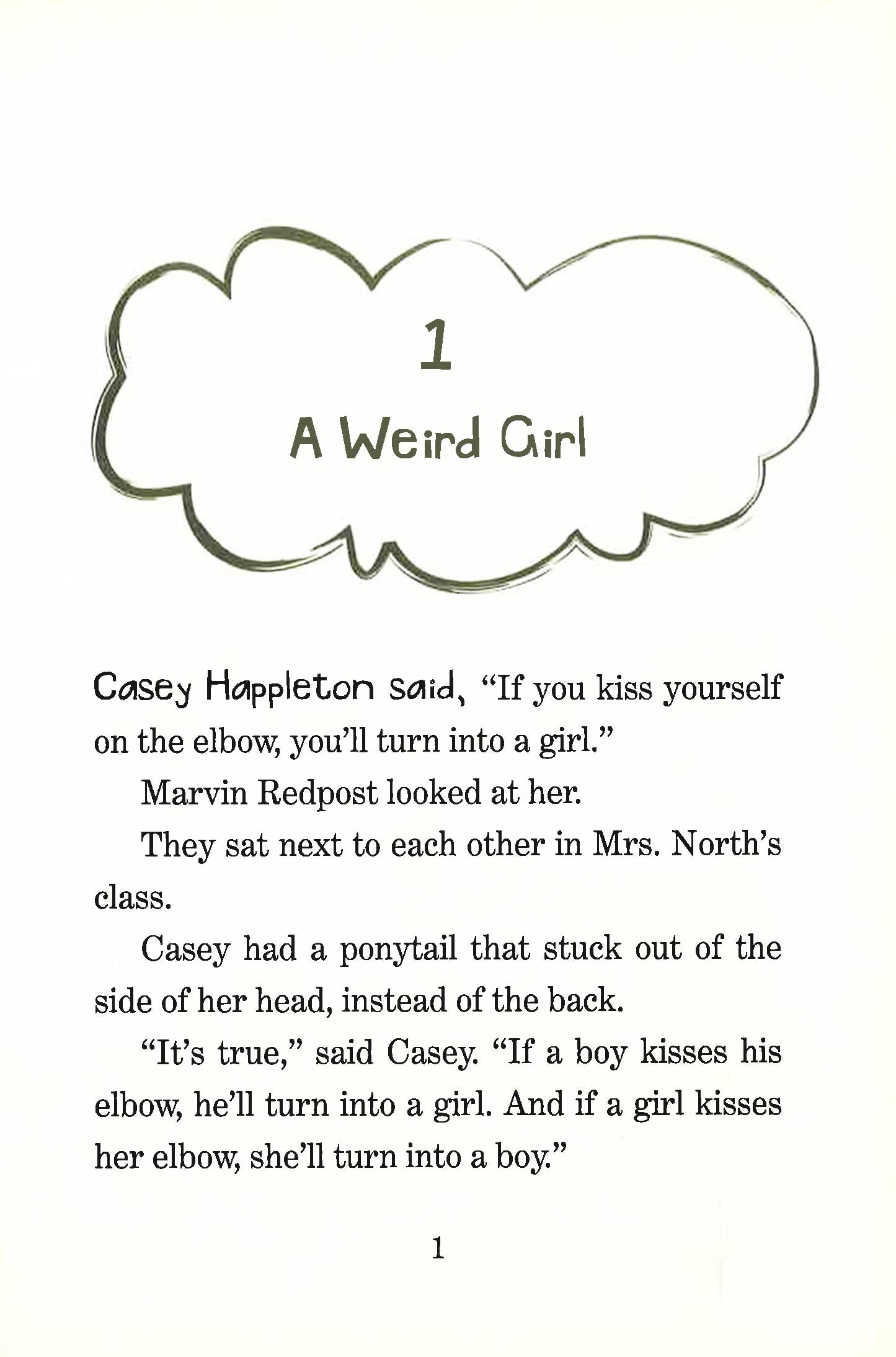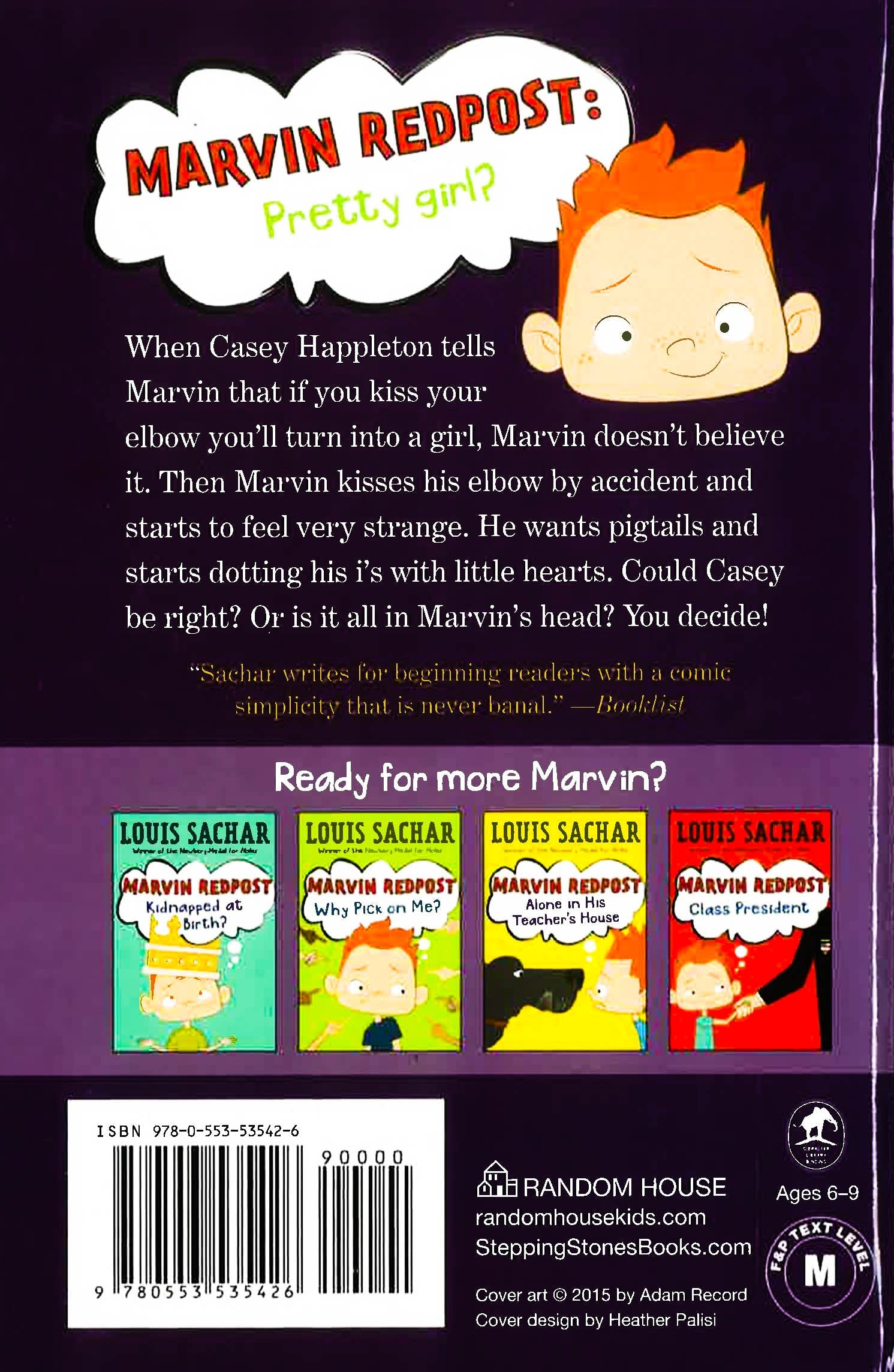 This chapter book in Newbery Honor-winning and bestselling author Louis Sachar's Marvin Redpost series offers a sidesplitting take on the differences between girls and boys! When Casey Happleton tells Marvin that if you kiss your elbow you'll turn into a girl, Marvin doesn't believe it. Then Marvin kisses his elbow by accident and starts to feel very strange. He wants pigtails and starts dotting his i's with little hearts. Could Casey be right? Or is it all in Marvin's head? You decide! Hilarious and relatable, Marvin Redpost is perfect for kids who love to bond with quirky characters like George Brown, Class Clown and Junie B. Jones.