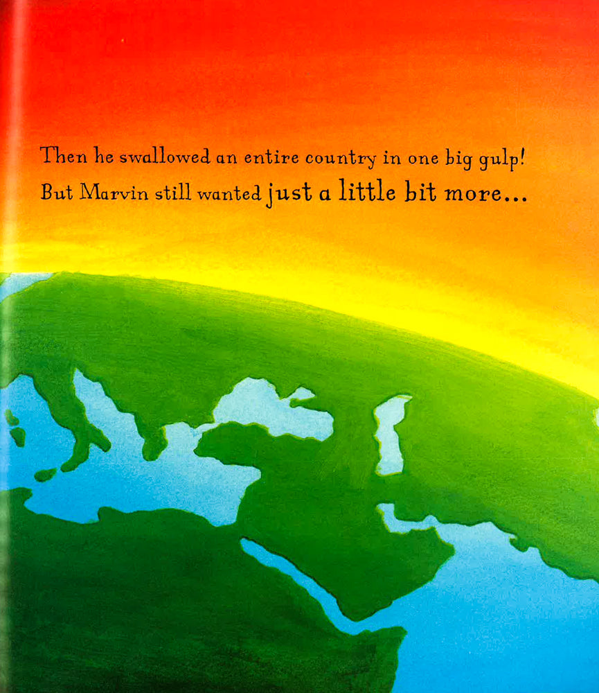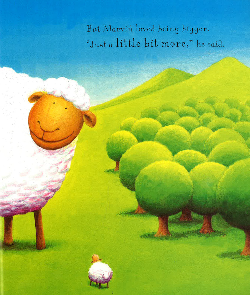 Marvin is not happy. Why are the other sheep bigger than him? And why are they faster than him? And WHY can they jump higher than him? Something has to change, and Marvin knows exactly how to change it . . . by EATING! Because if he's bigger than the other sheep, then surely he will be better, too? And after eating the grass and the flowers and the bushes, Marvin wants more. And after eating the trees and the clouds and the sky, Marvin still wants more! But what happens when there's nothing more left for Marvin to eat? A brilliantly funny picture book about a brilliantly greedy sheep!