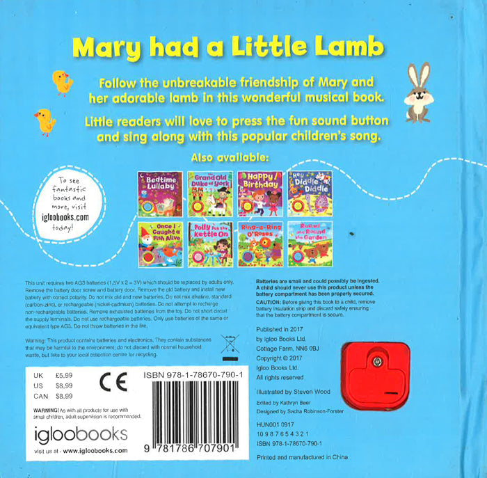 Follow the unbreakable friendship of Mary and her adorable lamb in this wonderful musical book.