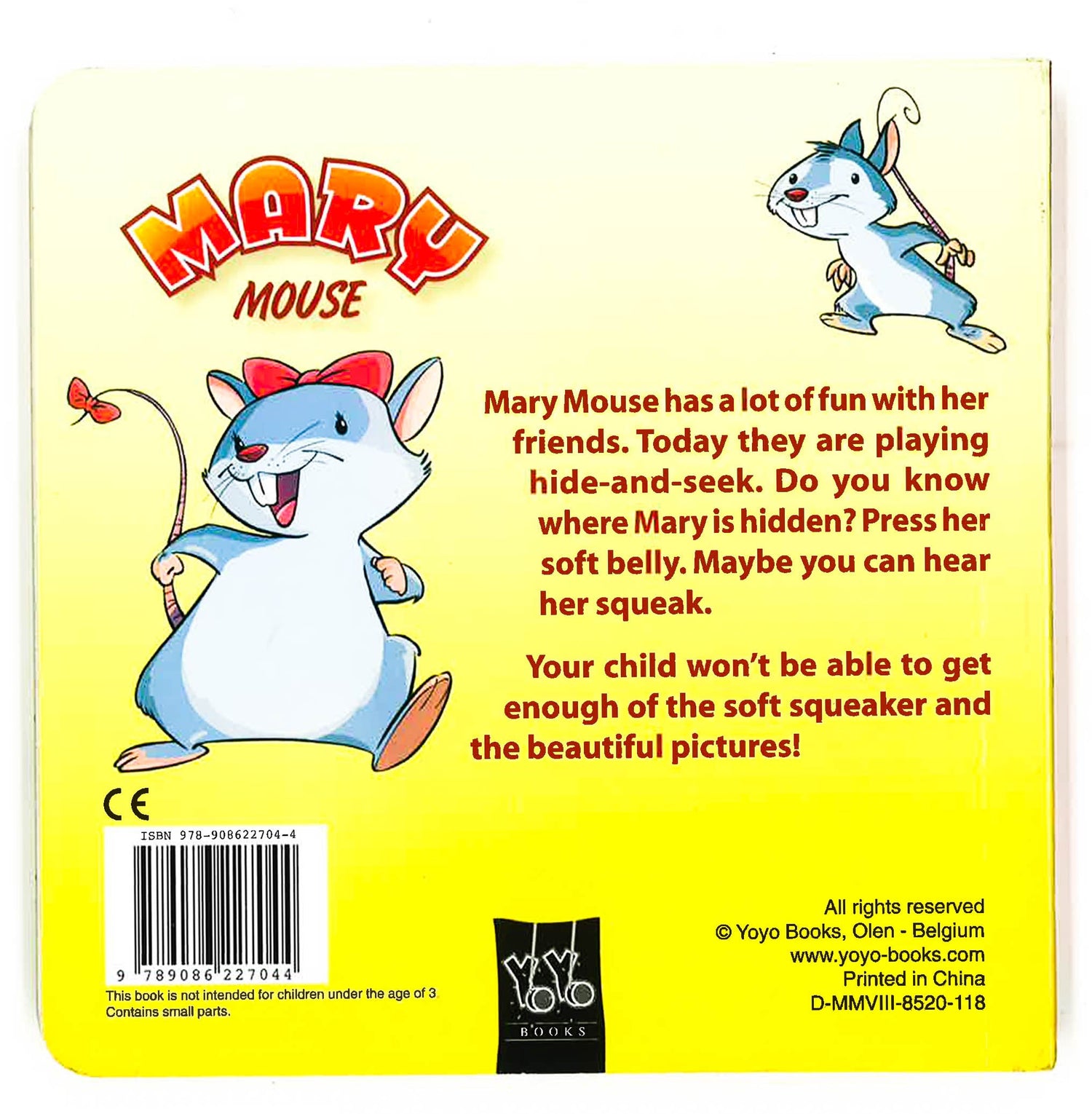 Mary Mouse has a lot of fun with her friends. Today they are playing hide-and-seek. Do you know where Mary is hidden? Press her soft belly. Maybe you can hear her squeaker. Your child won't be able to get enough of the soft squeaker and the beautiful pictures! (Age Range 3-6)