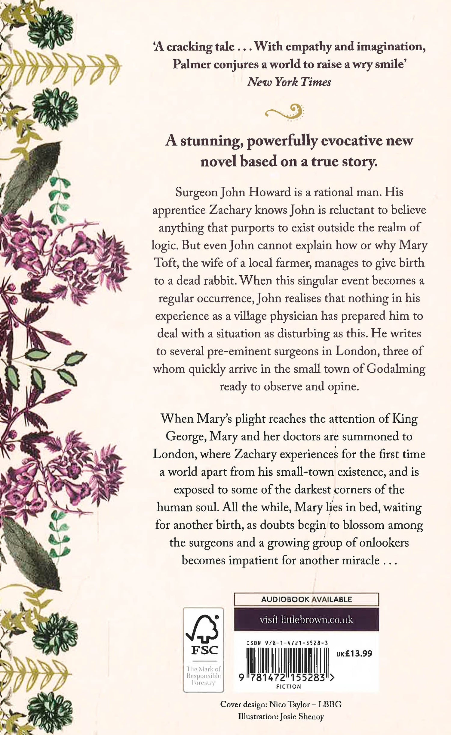 A stunning, powerfully evocative new novel based on a true story - in 1726 in the small town of Godalming, England, a young woman confounds the medical community by giving birth to dead rabbits.Surgeon John Howard is a rational man. His apprentice Zachary knows John is reluctant to believe anything that purports to exist outside the realm of logic. But even John cannot explain how or why Mary Toft, the wife of a local farmer, manages to give birth to a dead rabbit. When this singular event becomes a regular occurrence, John realizes that nothing in his experience as a village physician has prepared him to deal with a situation as disturbing as this. He writes to several preeminent surgeons in London, three of whom quickly arrive in the small town of Godalming ready to observe and opine. When Mary's plight reaches the attention of King George, Mary and her doctors are summoned to London, where Zachary experiences for the first time a world apart from his small-town existence, and is exposed to some of the darkest corners of the human soul. All the while, Mary lies in bed, waiting for another birth, as doubts begin to blossom among the surgeons and a growing group of onlookers grow impatient for another miracle . . .
