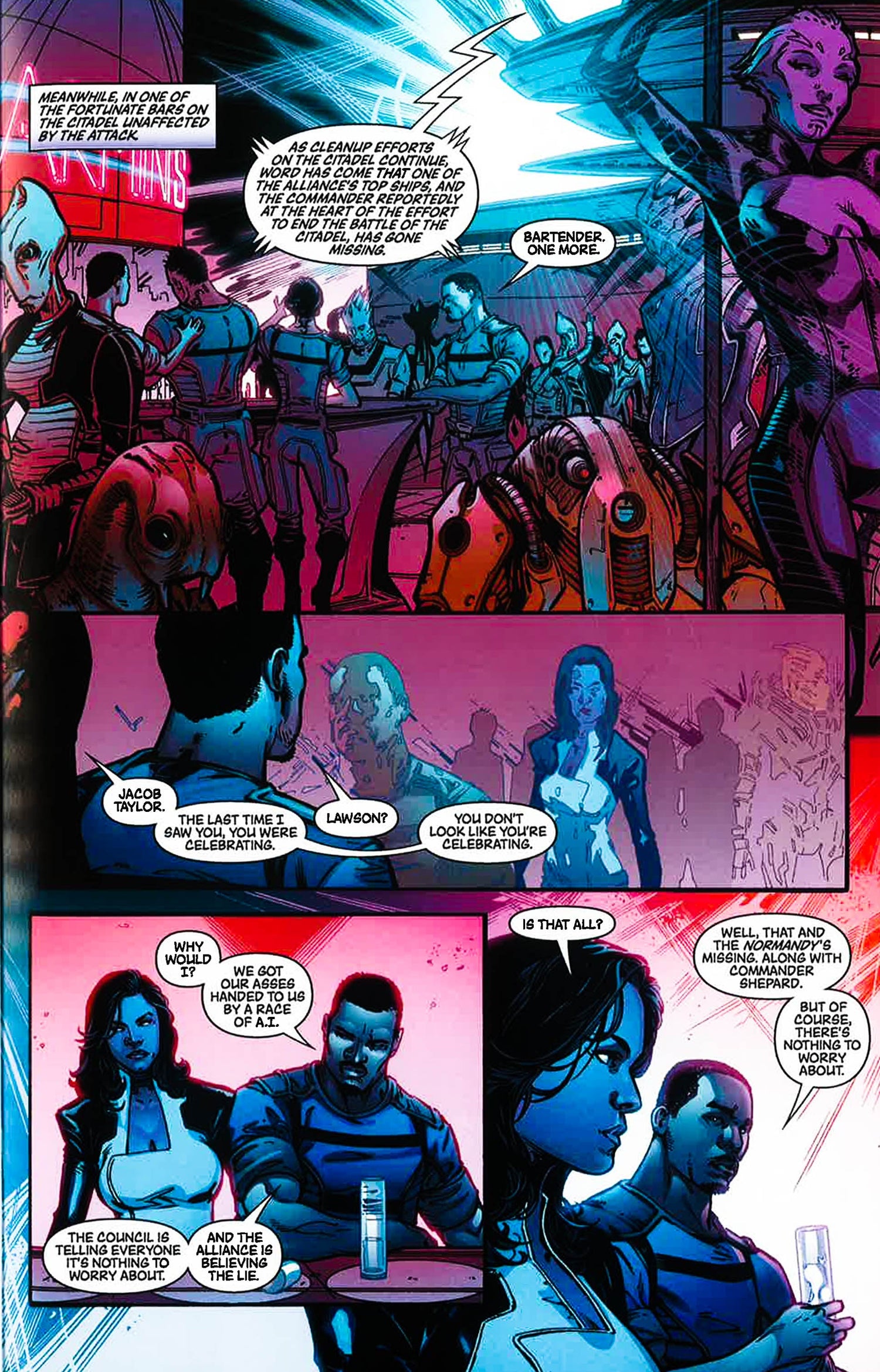 On the distant, lawless edge of the populated galaxy, Jacob Taylor and Miranda Lawson are sent to search for the body of the deceased Commander Shepard. Instead, they encounter a threat that could lead to their demise as well! Then, Jacob and Miranda's mission takes a deadly turn as the duo find themselves in the gun sights of a vicious batarian warlord! Mass Effect 2 and 3 lead writer Mac Walters continues the thrilling series set during the events of BioWare's blockbuster science fiction trilogy!