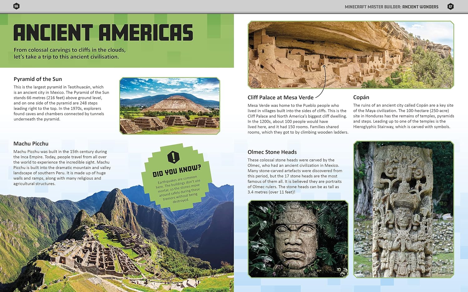 Builds range in difficulty, so there's something for every reader to get creating right away. Plus, every section is filled with fun facts about each ancient culture, helping to turn historical information into amazing interactive play. It's perfect for anyone who wants to learn and create at the same time – or for anyone who just loves making the most awesome Minecraft builds.