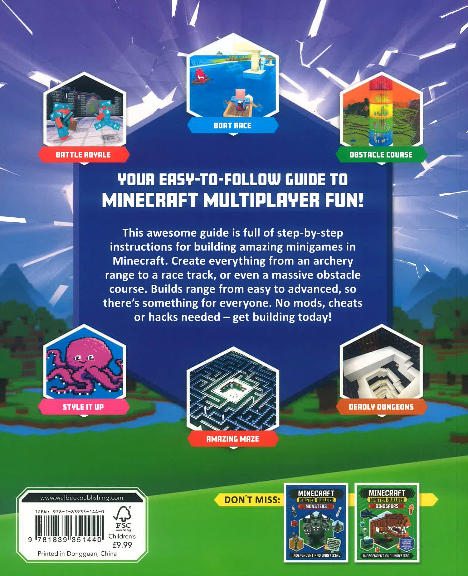 Have you ever wanted to race, quest or even play Battle Royale with friends in Minecraft? All it takes to make a cool minigame is some time, some blocks and an online friend or two! The games are designed to be made in regular Minecraft, with no mods or hacking needed. They range in difficulty from simple mazes to more complex race tracks and obstacle courses. Thanks to simple, clear instructions, building the games is as much fun as making them. There's also lots of information on how to get Minecraft multiplayer working, how to get your friends involved, and how to make sure you're playing safely.