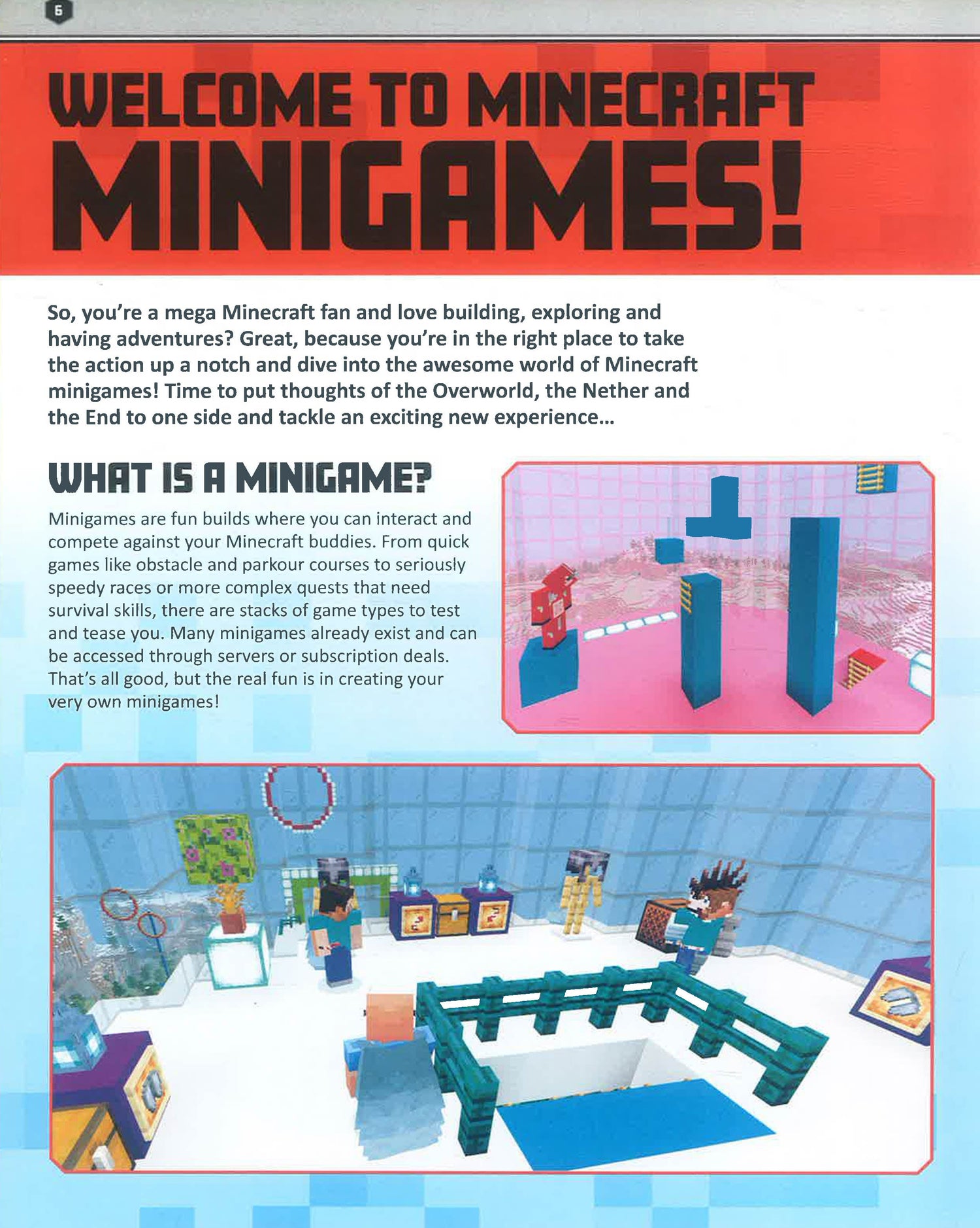 This fun, accessible guide contains instructions on how to build and play 12 different minigames within Minecraft. It's fun, simple and perfect for anyone who plays Minecraft with buddies online.