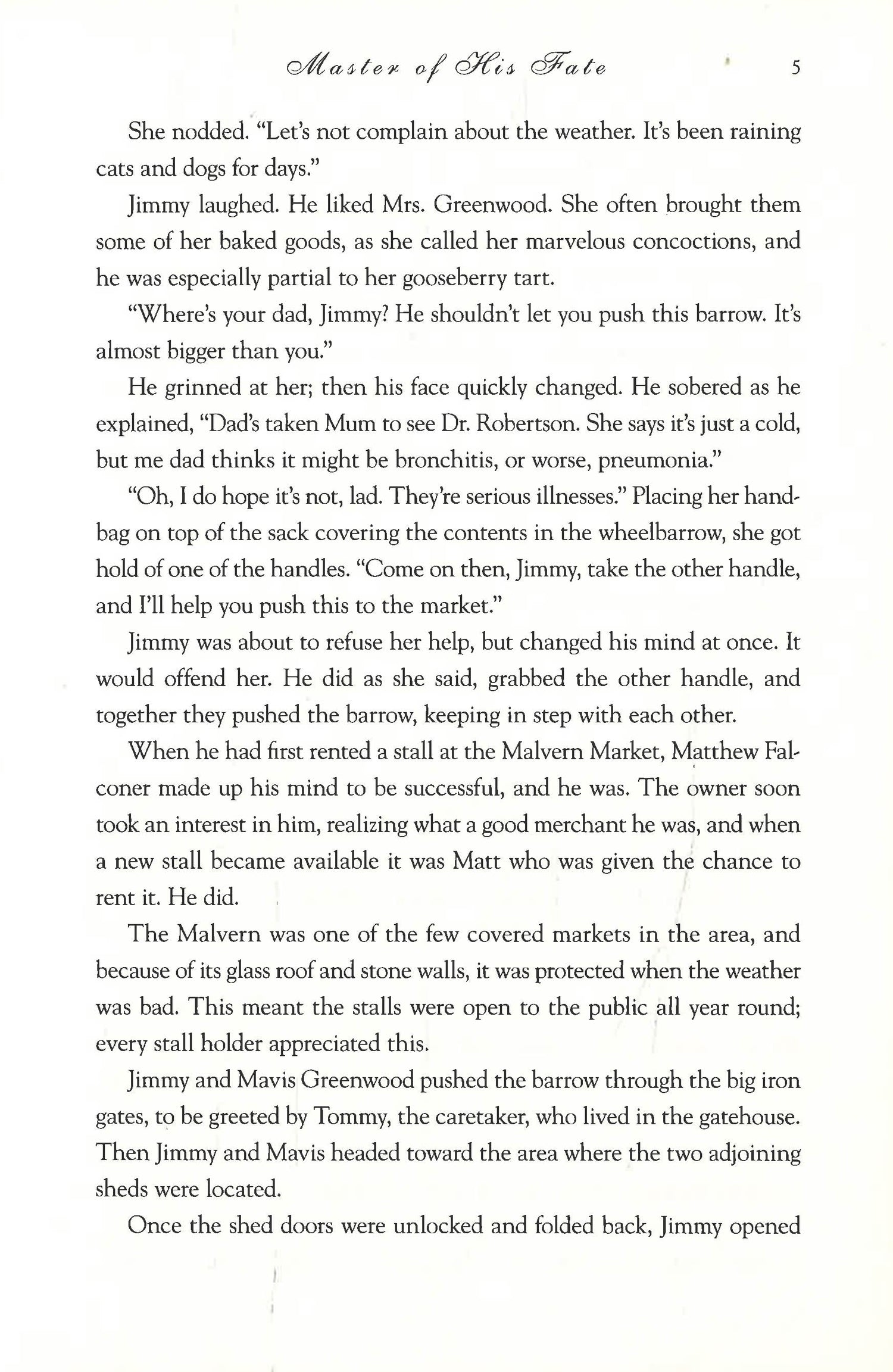 Victorian England is a country of sharp divides between rich and poor, but James Lionel Falconer, who spends his days working at his fathers market stall, is determined to become a merchant prince. Even as a child, he is everything a self-made man should be: handsome, ambitious, charming, and brimming with self-confidence. James quickly rises through the ranks, proving himself both hardworking and trustworthy, and catching the eye of Henry Malvern, head of the most prestigious shipping company in London. But when threats against his reputation and his life - begin to emerge, James will have to prove that he truly is the master of his fate.