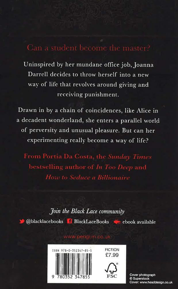 Can a student become the master?Uninspired by her mundane office job, Joanna Darrell decides to throw herself into a new way of life that revolves around giving and receiving punishment. Drawn in by a chain of coincidences, like Alice in a decadent wonderland, she enters a parallel world of perversity and unusual pleasure. But can her experimenting really become a way of life?From Portia Da Costa, the Sunday Times bestselling author of In Too Deep and How to Seduce a Billionaire