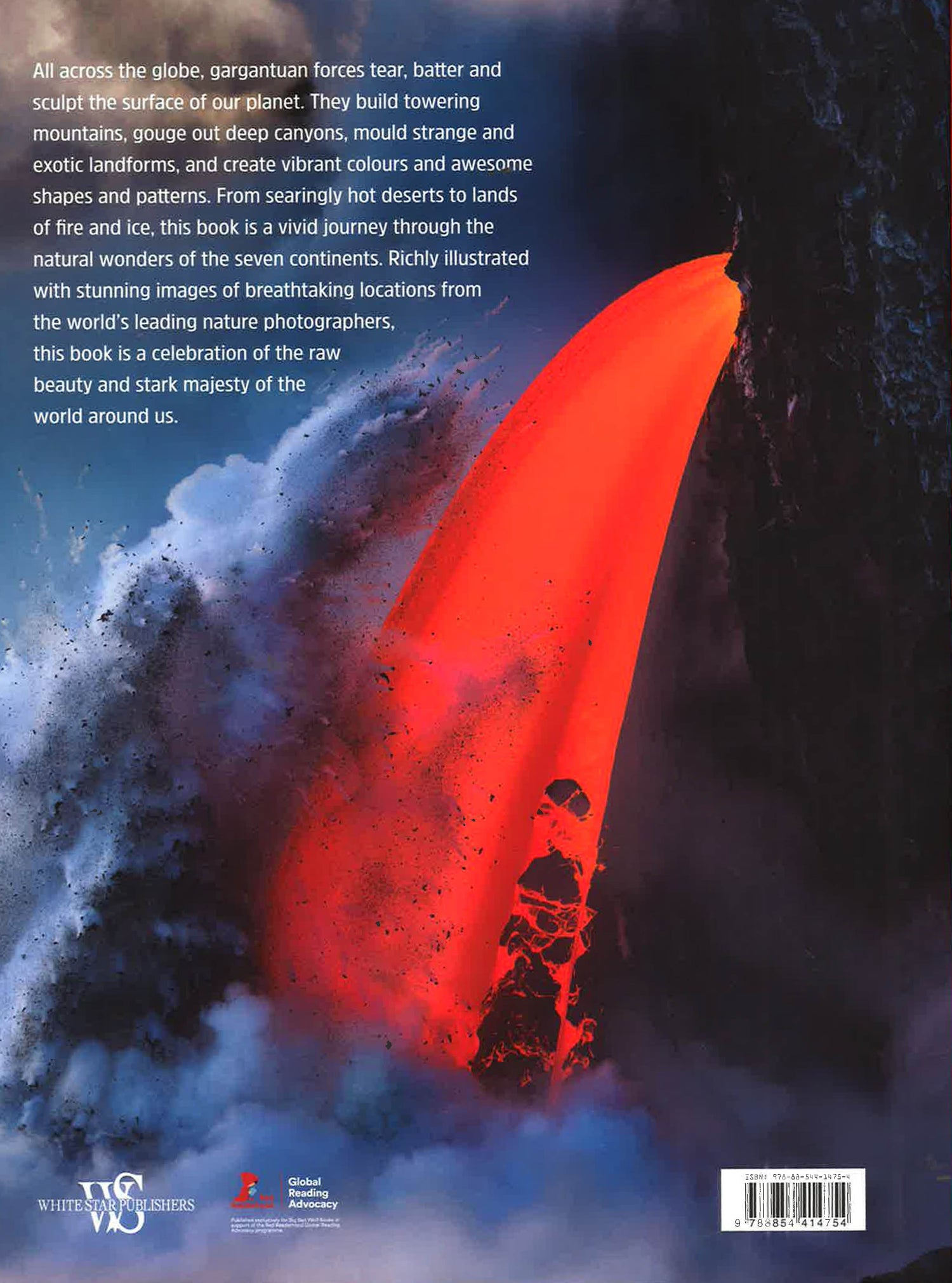 With page after page of spectacular photographs, this book pays homage to the powerful forces that shape our planet—fire, ice, water, and wind—revealing a world with extraordinary landscapes and breathtaking geological features. These images, of geysers spewing scalding water, glaciers chiseling out the mountainsides, and red-hot molten lava exploding on contact with the ocean, demonstrate how Earth’s current appearance resulted from the incessant, powerful, and widespread activity of nature and climate change over the various geological eras. The portrait that emerges from this exceptional journey through vast patchwork quilts of salt deposits, colorful canyons, ripple-like sand patterns, and vibrant meltwater pools and channels, captures a living, endlessly changing, planet.