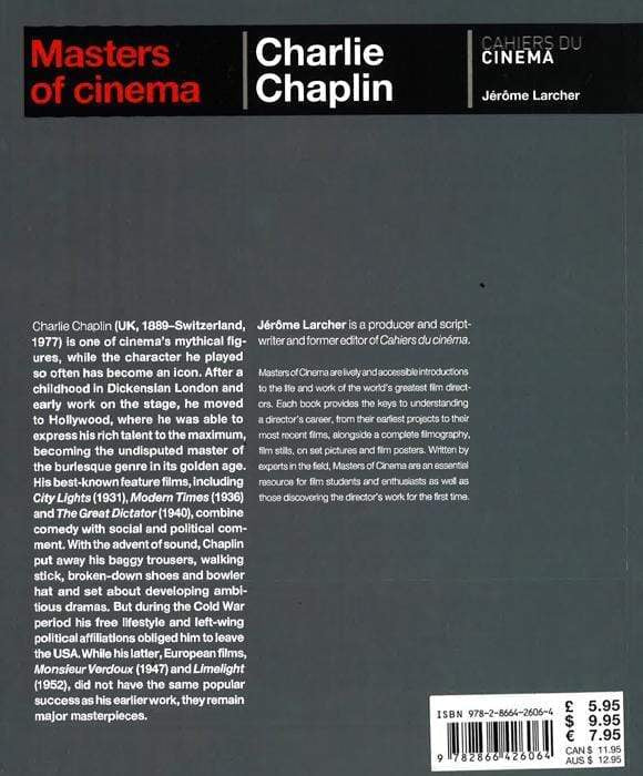 Charlie Chaplin (UK, 1889-Switzerland, 1977) is one of cinema's mythical figures, while the character he played so often has become an icon. After a childhood in Dickensian London and early work on the stage, it was his move to Hollywood that enabled him to express his rich talent to the maximum, becoming the undisputed master of the burlesque genre in its golden age. His best known feature films, including City Lights (1931), Modern Times (1936) and The Great Dictator (1940), were made in the 1930s and combine comedy with social and political comment. With the advent of sound, Chaplin put away his baggy trousers, walking stick, broken-down shoes and bowler hat and set about developing ambitious dramas. But during the cold war period his free lifestyle and left-wing political affiliations obliged him to leave the USA. While his last European films, Monsieur Verdoux (1947) and Limelight (1952), did not have the same popular success as his earlier work, they remain major masterpieces.