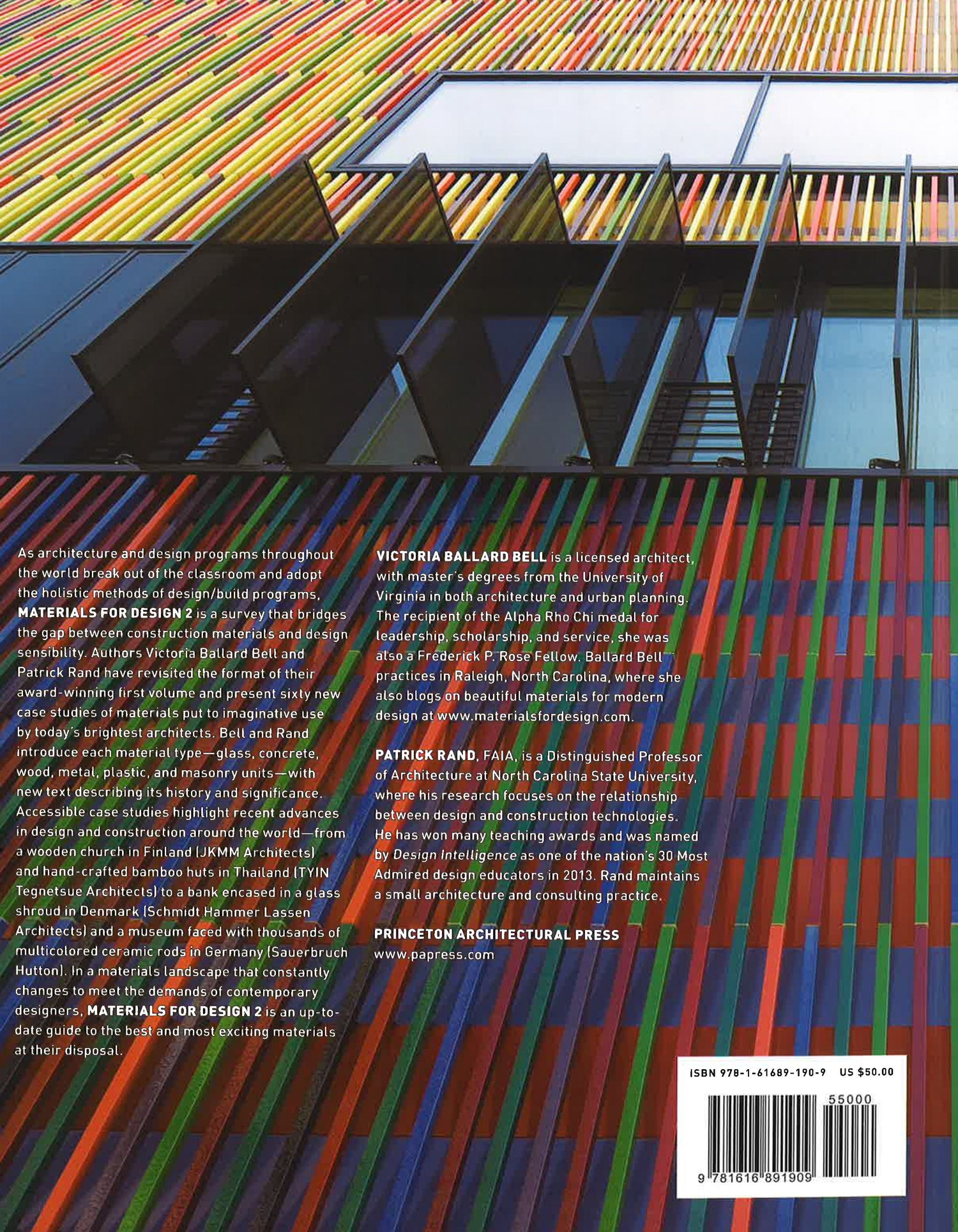 Materials for Design (2006) established that while material selection is one of the most significant decisions an architect must make, it is often not addressed at the early stages of the design process. Likewise, students are typically taught about material and design as if they were unrelated. With the advent of integrated design/build programs, however, the relationship between a project's aesthetics and its materiality has never been more important. Seven years will have passed since the first book and Materials for Design: Volume 2 will revisit the format of the original to provide a more current foundation for a strong design sensibility intertwined with material knowledge. The book is divided into six sections: glass, concrete, wood, metal, plastic and--new in Volume 2--masonry. Sixty brand new case studies by inventive architects from around the world, including Ryue Nishizawa (SANAA), LOT-EK, Studio Gang and Weiss/Manfredi, show these materials put to imaginative use, illustrating how their application informed each building's ultimate form and structure.