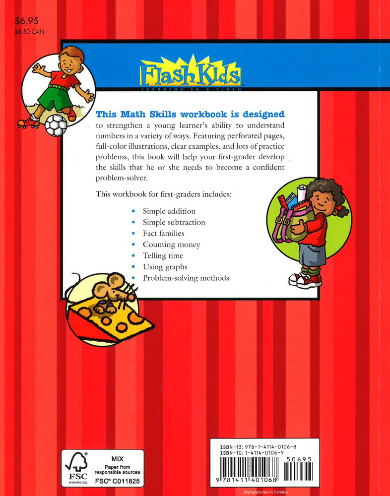 This Math Skills workbook is designed to strengthen a young learner’s ability to understand numbers in a variety of ways. Featuring perforated pages, full-color illustration, clear examples, and lots of practice problems, this book will help your first-grader develop the skills that he or she needs to become a confident problem-solver.