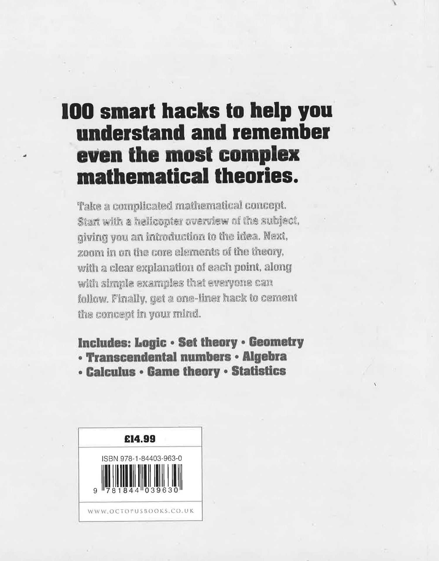 Everything you need to know about 100 key mathematical concepts condensed into easy-to-understand sound bites designed to stick in your memory and give you an instant grasp of the concept.