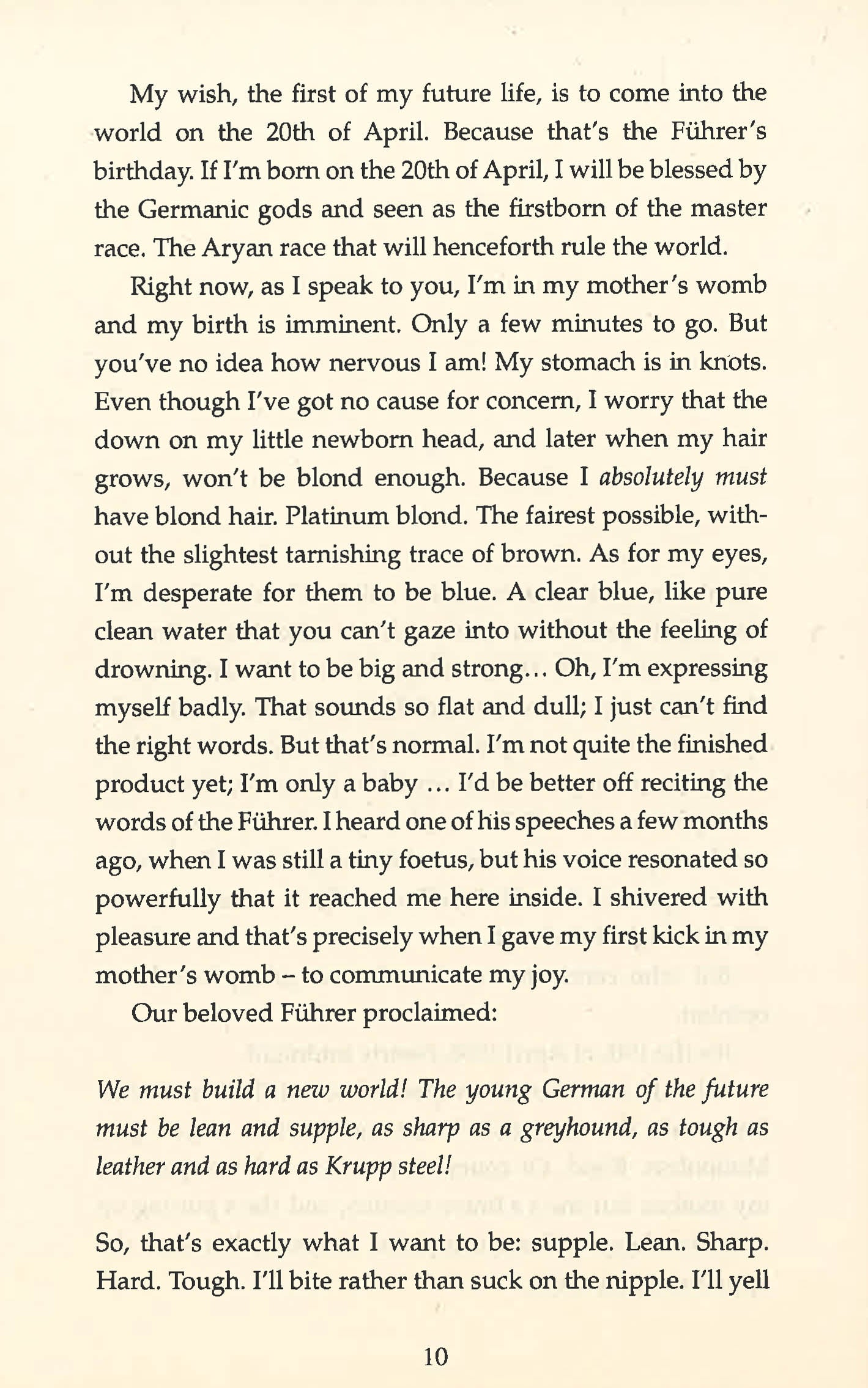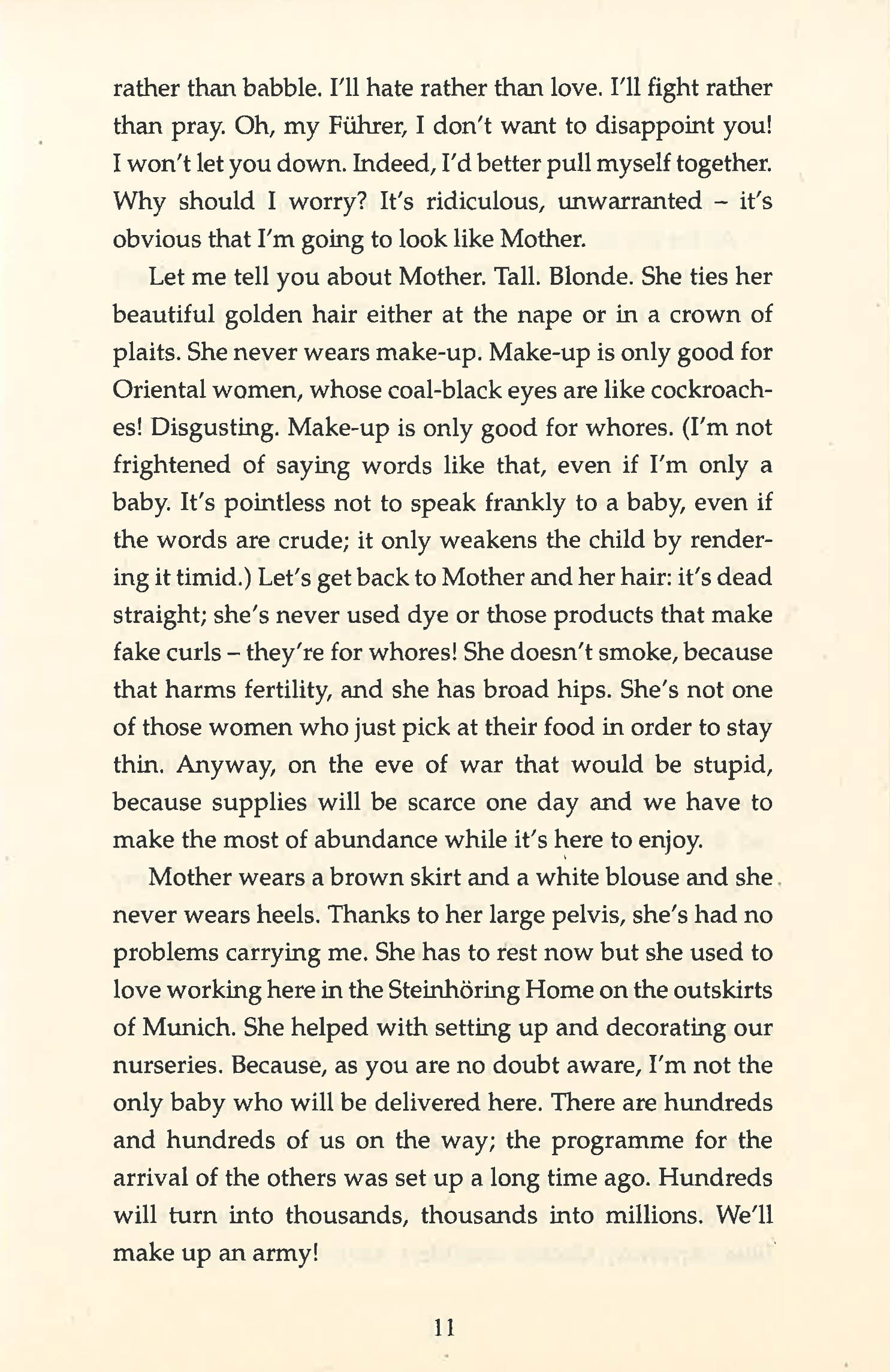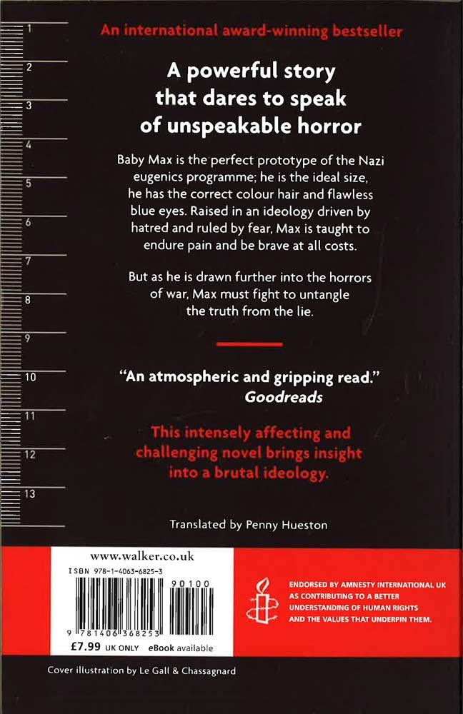 A compelling and chilling read about a young boy's ambition to become a model soldier in Nazi Germany. A compelling and chilling read about a young boy's ambition to become a model soldier in Nazi Germany.Baby Max is the perfect prototype of the Nazi eugenics programme; he is the ideal size, he has the correct colour hair and flawless blue eyes. Raised in an ideology driven by hatred and ruled by fear, Max is taught to endure pain and be brave at all costs. But as he is drawn further into the horror of war, Max must fight to untangle the truth from the lie.