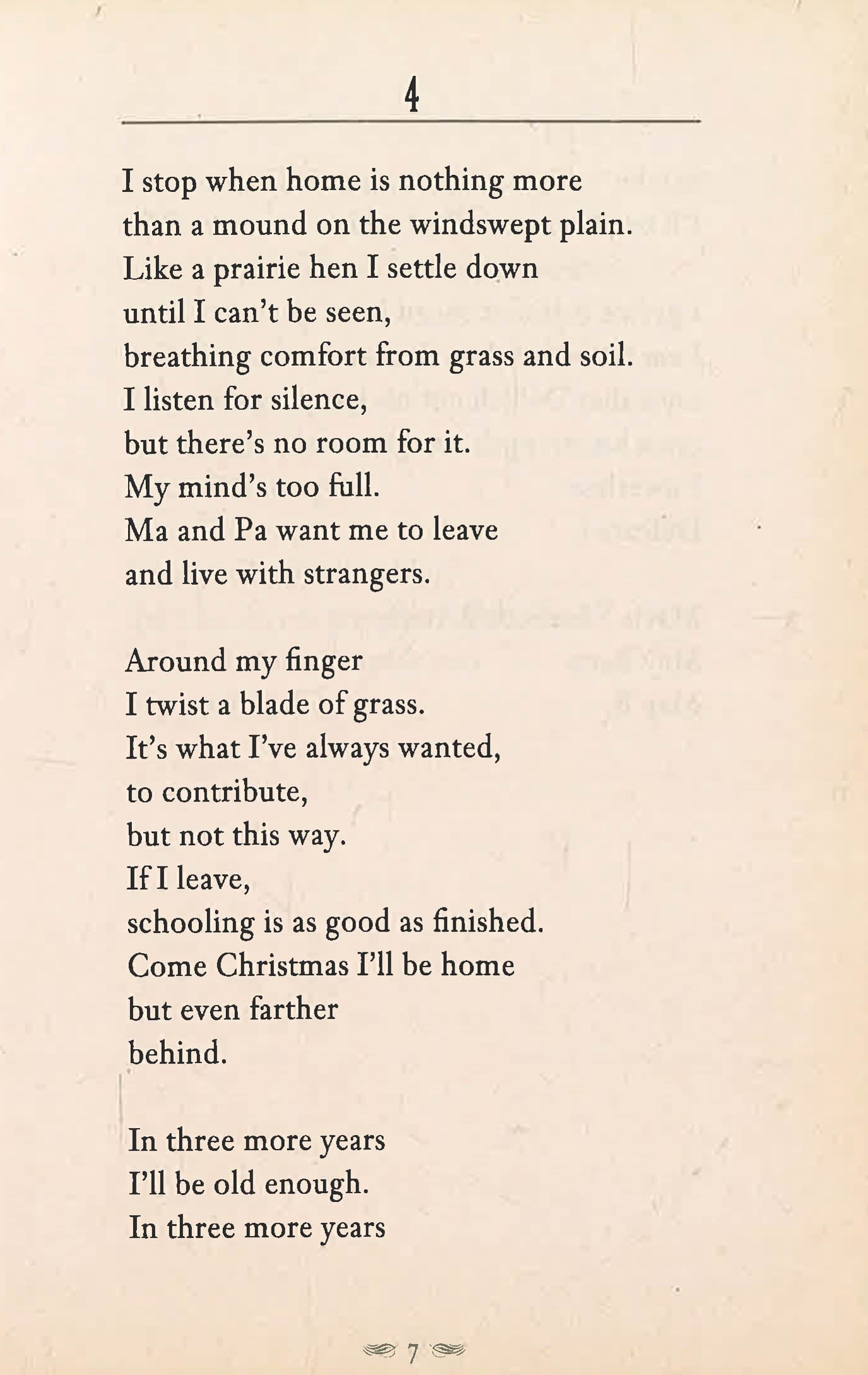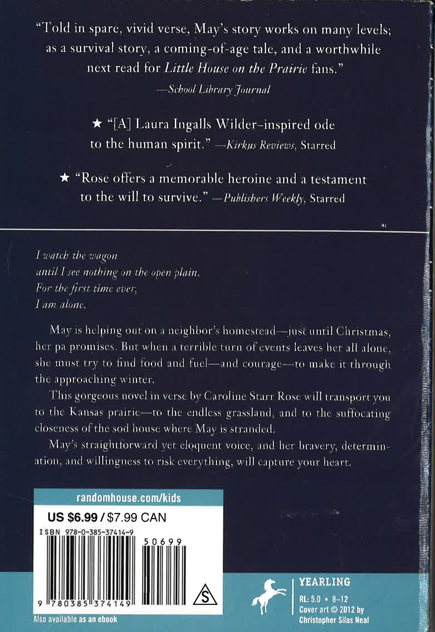 Something's happened. May is helping out on a neighbor's Kansas prairie homestead--just until Christmas, says Pa. She wants to contribute, but it's hard to be separated from her family by 15 long, unfamiliar miles. Then the unthinkable happens: May is abandoned. Trapped in a tiny snow-covered sod house, isolated from family and neighbors, May must prepare for the oncoming winter. While fighting to survive, May's memories of her struggles with reading at school come back to haunt her. But she's determined to find her way home again. Caroline Starr Rose's fast-paced novel, written in beautiful and riveting verse, gives readers a strong new heroine to love.