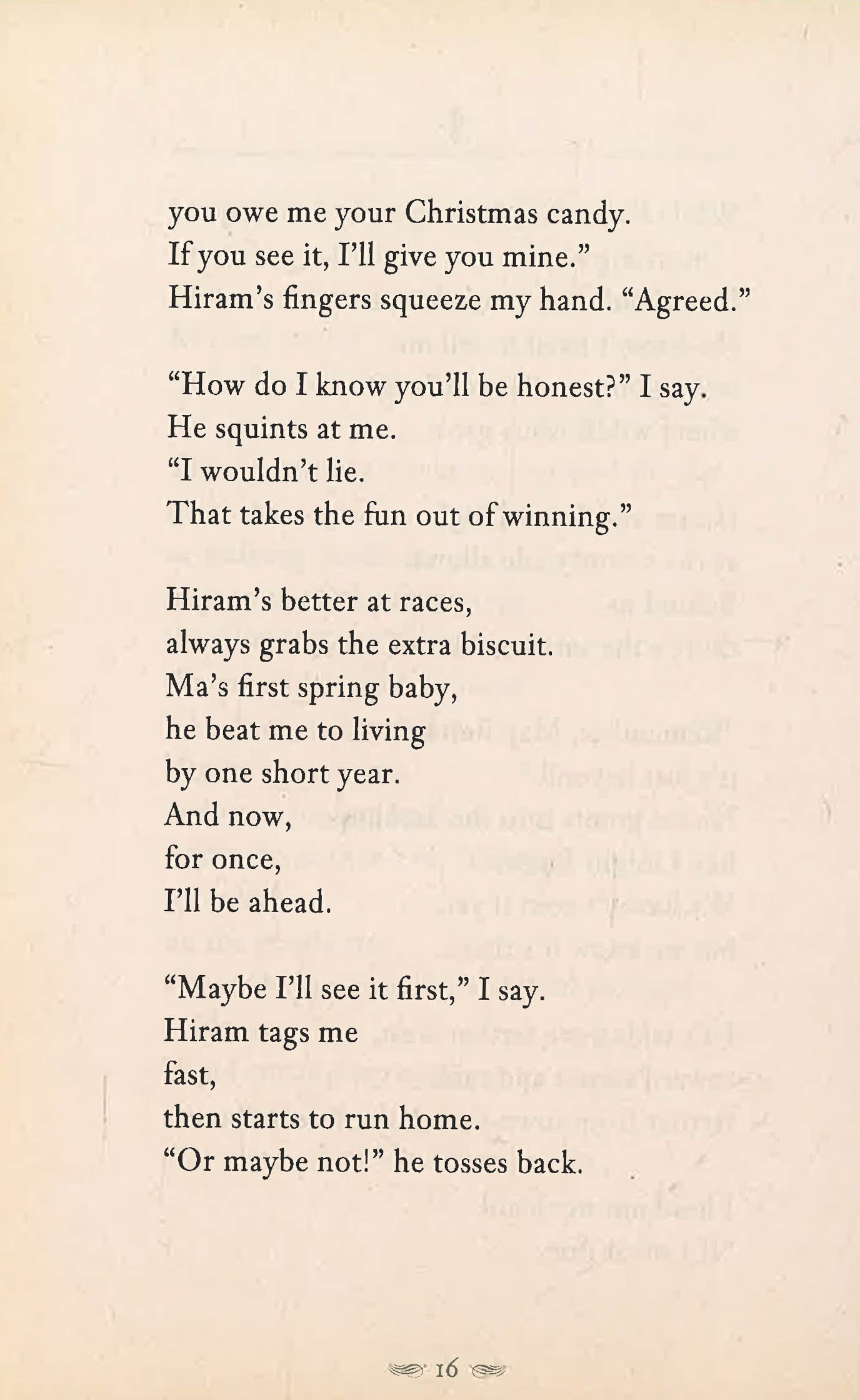"If May is a brave, stubborn fighter, the short, free-verse lines are one-two punches in this Laura Ingalls Wilder-inspired ode to the human spirit." -- Kirkus Reviews, Starred I've known it since last night: