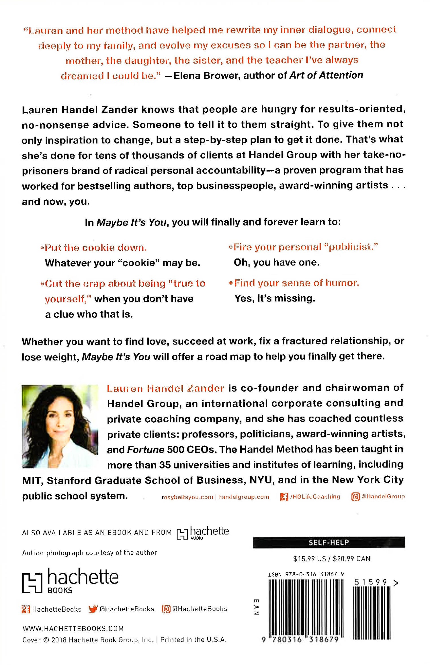 In Maybe It's You, life coach Lauren Handel Zander walks readers through the innovative step-by-step process that has transformed the lives of tens of thousands of her clients, and explains how anyone can achieve amazing things when we stop lying and finally start keeping the promises we make to ourselves. Whether readers want to find love, succeed at work, fix a fractured relationship, or lose weight, Zander's method will offer a road map to finally get there. Filled with practical exercises, inspiring client stories, and Lauren's own hard-won lessons, this book enables readers to identify, articulate, and account for their own setbacks so they can transform them into strengths