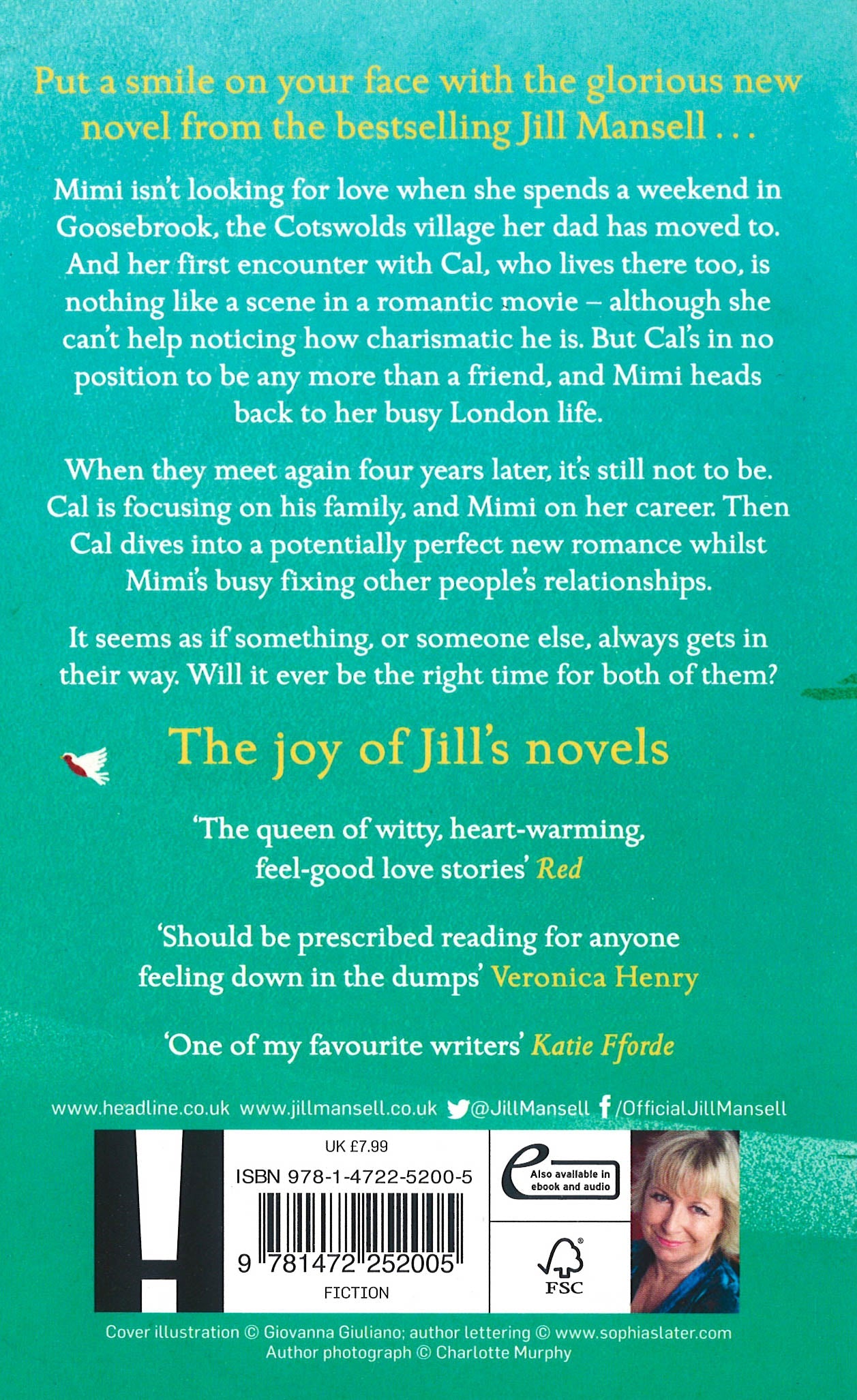 When Mimi Huish first visits her dad's new home in the Cotswolds, she falls in love with Goosebrook and the people who live there. There's Paddy, with his electric-blue eyes and seductive charm. Friendly and funny Lois makes Mimi laugh. And gorgeous Cal Mathieson is welcoming and charismatic. Though Mimi loves her city life and her career, she'd be very happy to return to the Cotswolds if it meant seeing more of him.
