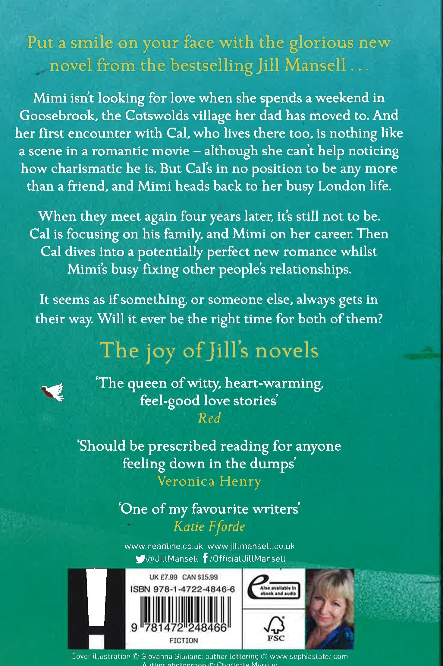 Jill's heartwarming, romantic and funny new novel will delight her fans, as Mimi discovers that love doesn't always wait till the timing is right ... Mimi isn't looking for love when she spends a weekend in Goosebrook, the Cotswolds village her dad has moved to. And her first encounter with Cal, who lives there too, is nothing like a scene in a romantic movie - although she can't help noticing how charismatic he is. But Cal's in no position to be any more than a friend, and Mimi heads back to her busy London life. When they meet again four years later, it's still not to be. Cal is focusing on his family, and Mimi on her career. Then Cal dives into a potentially perfect new romance whilst Mimi's busy fixing other people's relationships. It seems as if something, or someone else, always gets in their way. Will it ever be the right time for both of them?