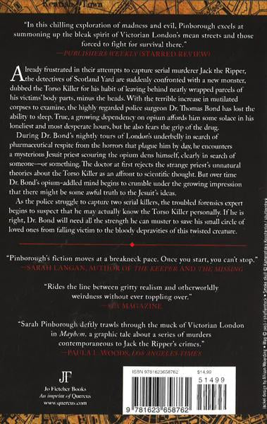 "a new supernatural-whodunit-polyphonic thriller for those not of the faint of heart" --Fort Worth Telegram "Pinborough's fiction moves at a breakneck pace. Once you start, you can't stop." --Sarah Langan, author of The Keeper and The Missing Already frustrated in their attempts to capture serial murderer Jack the Ripper, the detectives of Scotland Yard are suddenly confronted with a new monster, dubbed the Torso Killer for his habit of leaving behind neatly wrapped parcels of his victims' body parts, minus the heads. With the terrible increase in mutilated corpses to examine, the highly regarded police surgeon Dr. Thomas Bond has lost the ability to sleep. True, a growing dependency on opium affords him some solace in his loneliest and most desperate hours, but he also fears the grip of the drug. During Dr. Bond's nightly tours of London's underbelly in search of pharmaceutical respite from the horrors that plague him by day, he encounters a mysterious Jesuit priest scouring the opium dens himself, clearly in search of someone--or something. The doctor at first rejects the strange priest's unnatural theories about the Torso Killer as an affront to scientific thought. But over time Dr. Bond's opium-addled mind begins to crumble under the growing impression that there might be some awful truth to the Jesuit's ideas. As the police struggle to capture two serial killers, the troubled forensics expert begins to suspect that he may actually know the Torso Killer personally. If he is right, Dr. Bond will need all the strength he can muster to save his small circle of loved ones from falling victim to the bloody depravities of this twisted creature.