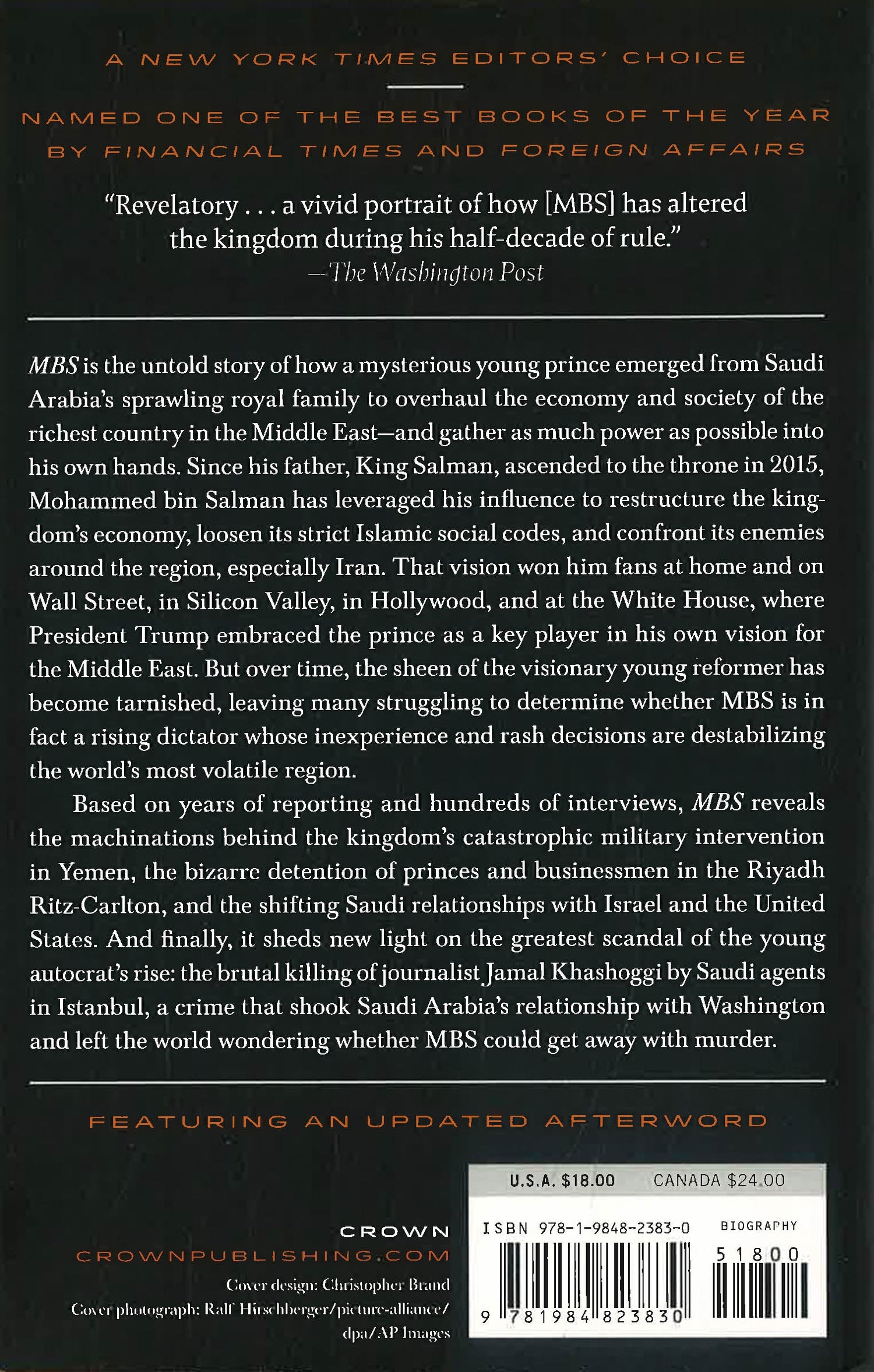 Based on years of reporting and hundreds of interviews, MBS reveals the machinations behind the kingdom's catastrophic military intervention in Yemen, the bizarre detention of princes and businessmen in the Riyadh Ritz-Carlton, and the shifting Saudi relationships with Israel and the United States. And finally, it sheds new light on the greatest scandal of the young autocrat's rise: the brutal killing of journalist Jamal Khashoggi by Saudi agents in Istanbul, a crime that shook Saudi Arabia's relationship with Washington and left the world wondering whether MBS could get away with murder.