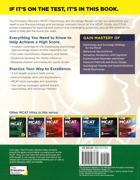 IF IT'S ON THE TEST, IT'S IN THIS BOOK. The Princeton Review's MCAT Psychology and Sociology Review brings you everything you need to ace the Behavioral Sciences concepts on the MCAT, including a thorough content review and 3 full-length practice tests. Everything You Need to Know to Help Achieve a High Score.