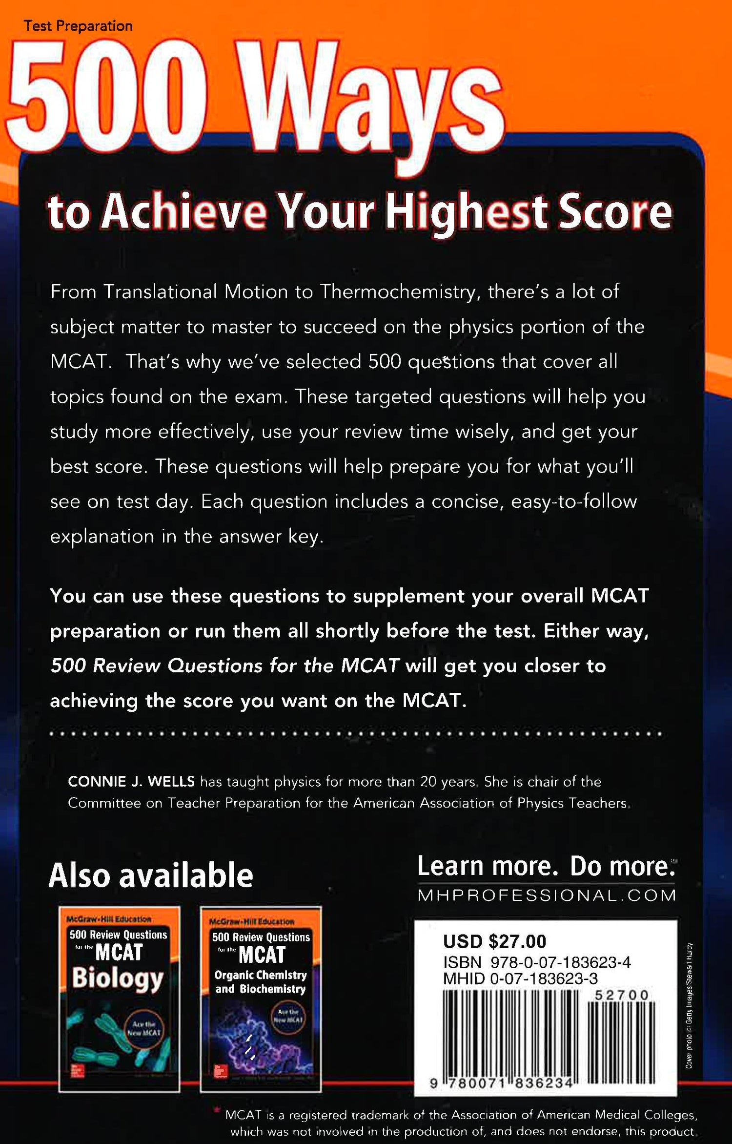 500 ways to pass the Physics section of the new MCAT! Intensive practice + detailed answer explanations-the best way to sharpen skills and prepare for the exam. In anticipation of the fully revised 2015 MCAT, 500 Review Questions for the MCAT: Physics has been updated to comprehensively cover the physics portion of the Chemical and Physical Foundations of Biological Systems section. This book provides the problem-solving practice you need to take the exam with confidence. 500 questions organized by subject Follows the new MCAT format Complete explanations to every question given in the answer key