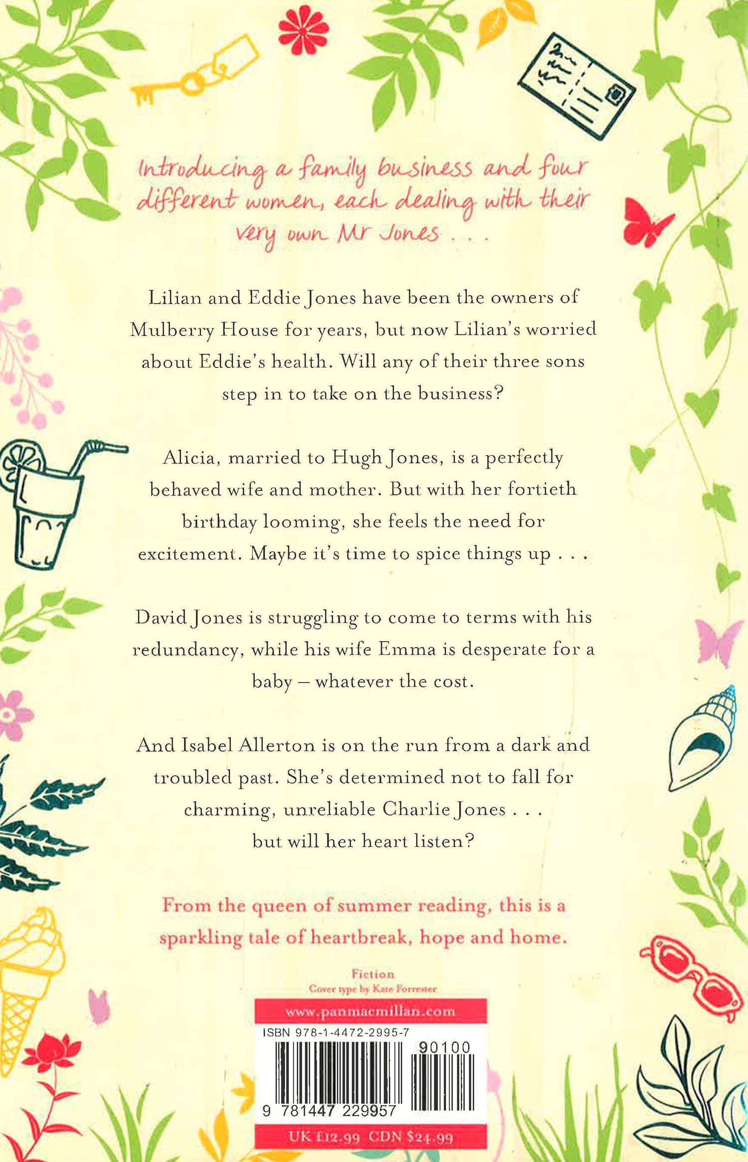 You may love him, but can you ever love his family? Introducing a family business and four different women, each dealing with their very own Mr Jones...Lilian and Eddie Jones have been the owners of Mulberry House for years, but now Lilian's worried about Eddie's health. Will any of their three sons step in to take on the business? Alicia, married to Hugh Jones, is a perfectly behaved wife and mother. But with her fortieth birthday looming, she feels the need for excitement. Maybe it's time to spice things up...David Jones is struggling to come to terms with his redundancy, while his wife Emma is desperate for a baby - whatever the cost. And Isabel Allerton is on the run from a dark and troubled past. She's determined not to fall for charming, unreliable Charlie Jones...but will her heart listen?