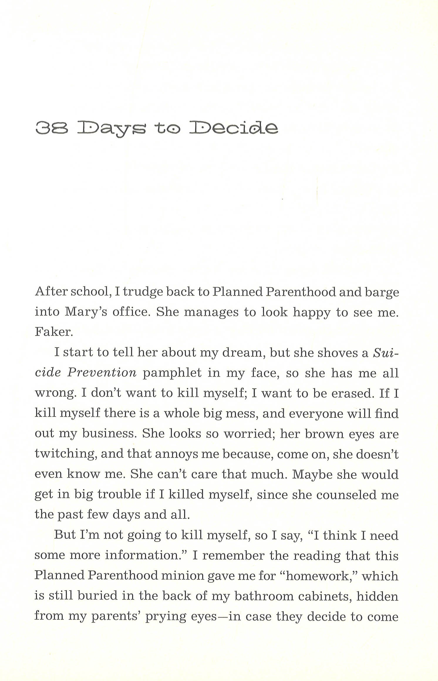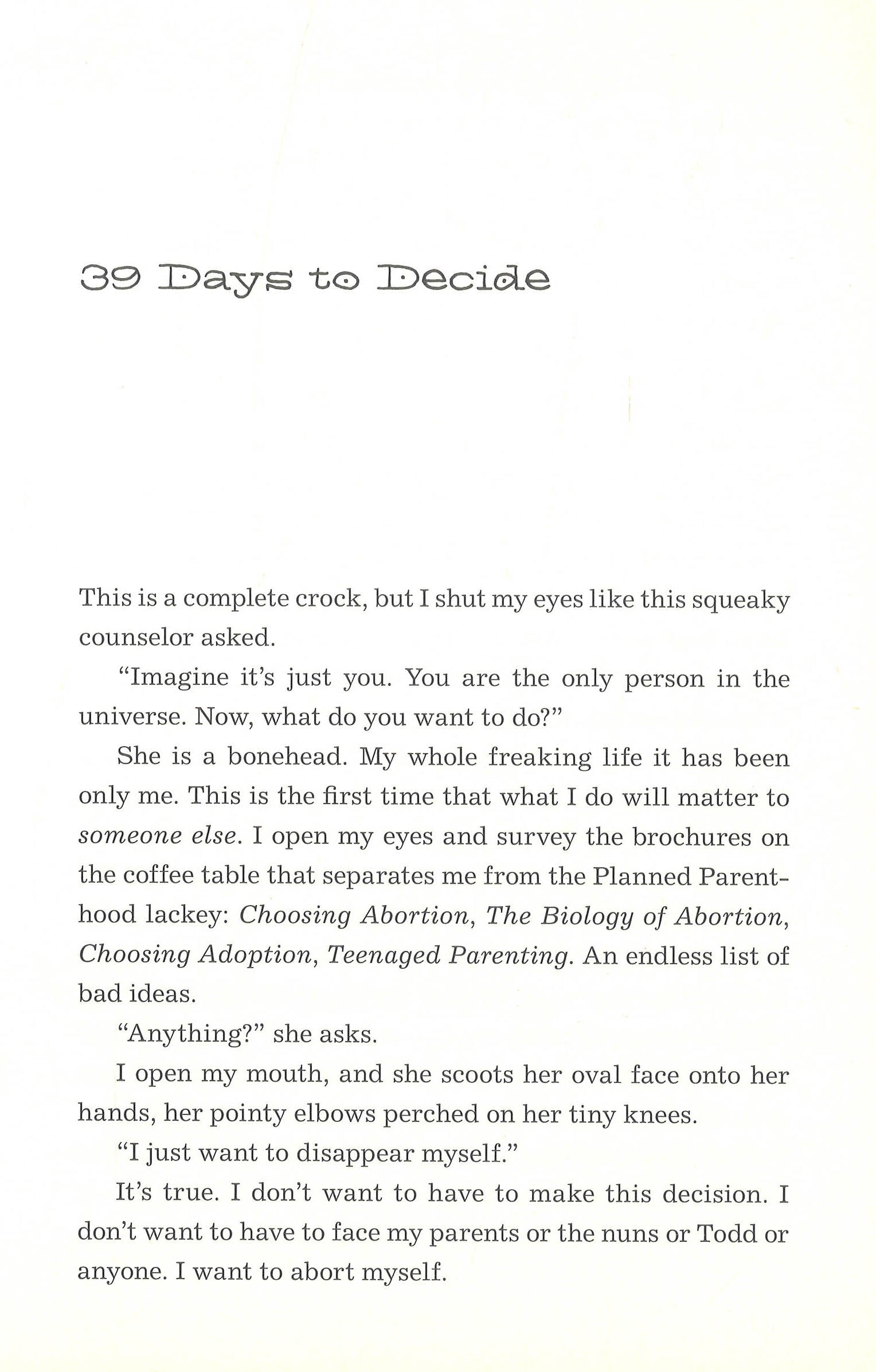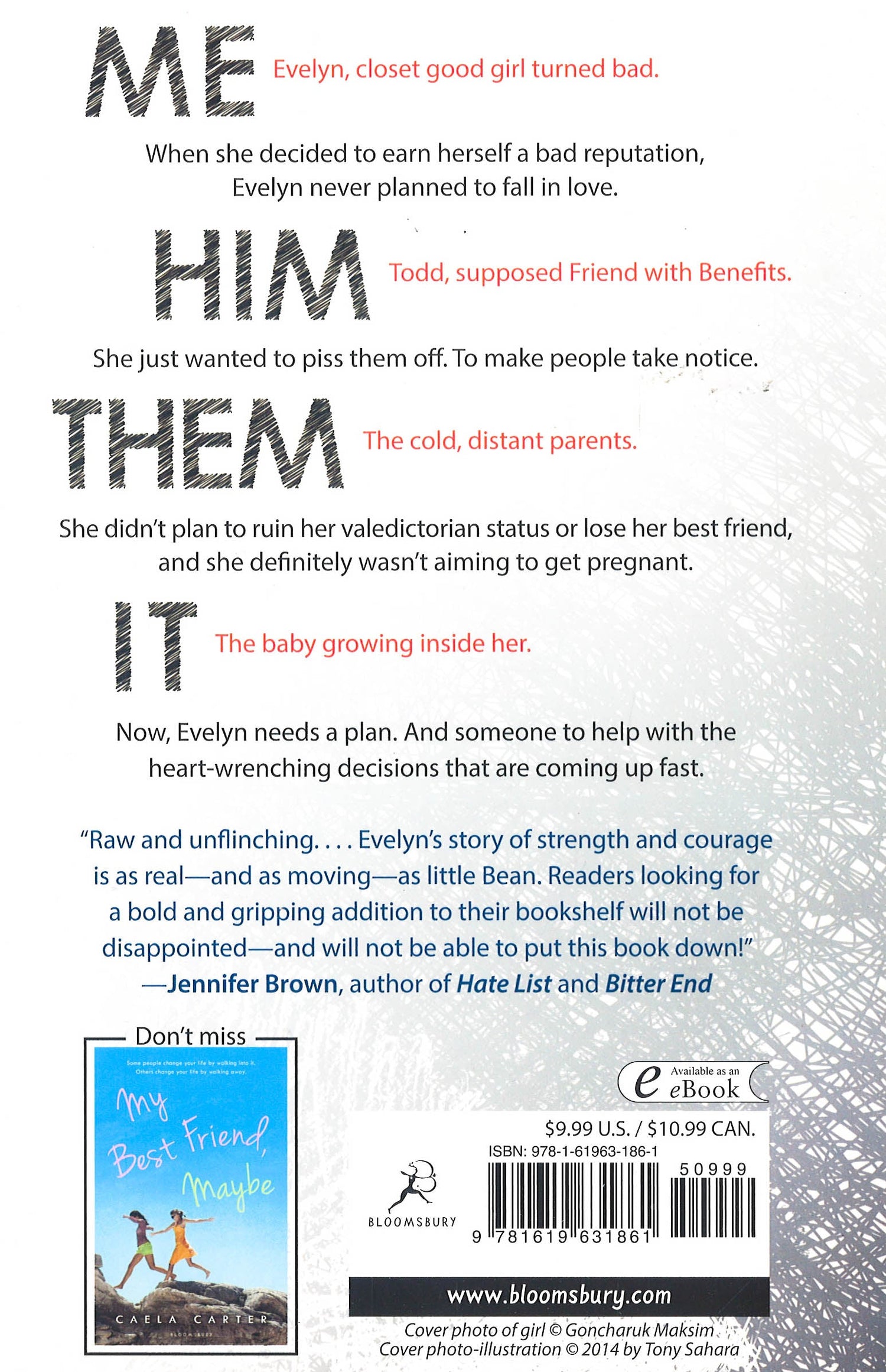 IT: The baby that's growing inside her. When Evelyn decided to piss off her parents with a bad reputation, she wasn't planning to ruin her valedictorian status. She also wasn't planning to fall for Todd—the guy she was just using for sex. And she definitely wasn't planning on getting pregnant. When Todd turns his back on her, Evelyn's not sure where to go. Can a distant mother, a cheating father, an angry best friend, and a (thankfully) loving aunt with adopted daughters of her own help Evelyn make the heart-wrenching decisions that follow?