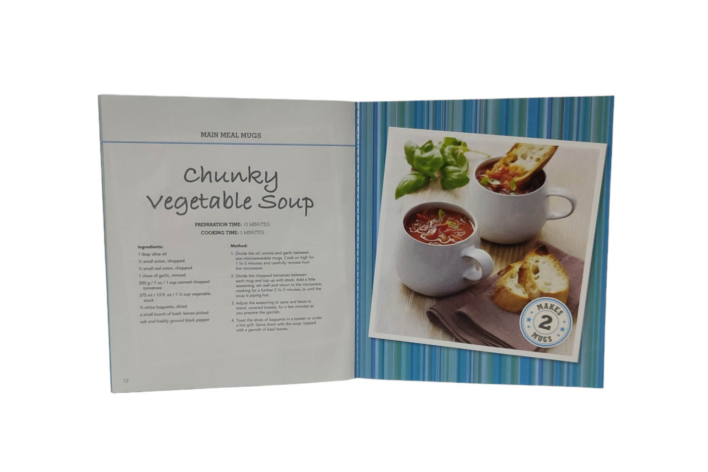 Cooking has never been easier! With Meal in a Mug you can whip up super quick dishes in minutes, with little more than a mug, a microwave and a handful of ingredients. This unique box set contains all the essentials you need to discover fast food at home, including a handy mug and a 64 page cookbook, designed to help you achieve great food – fast! From speedy soups and main meals to decadent desserts and cakes, this quirky set is perfect for lazy chefs and experimental cooks alike.