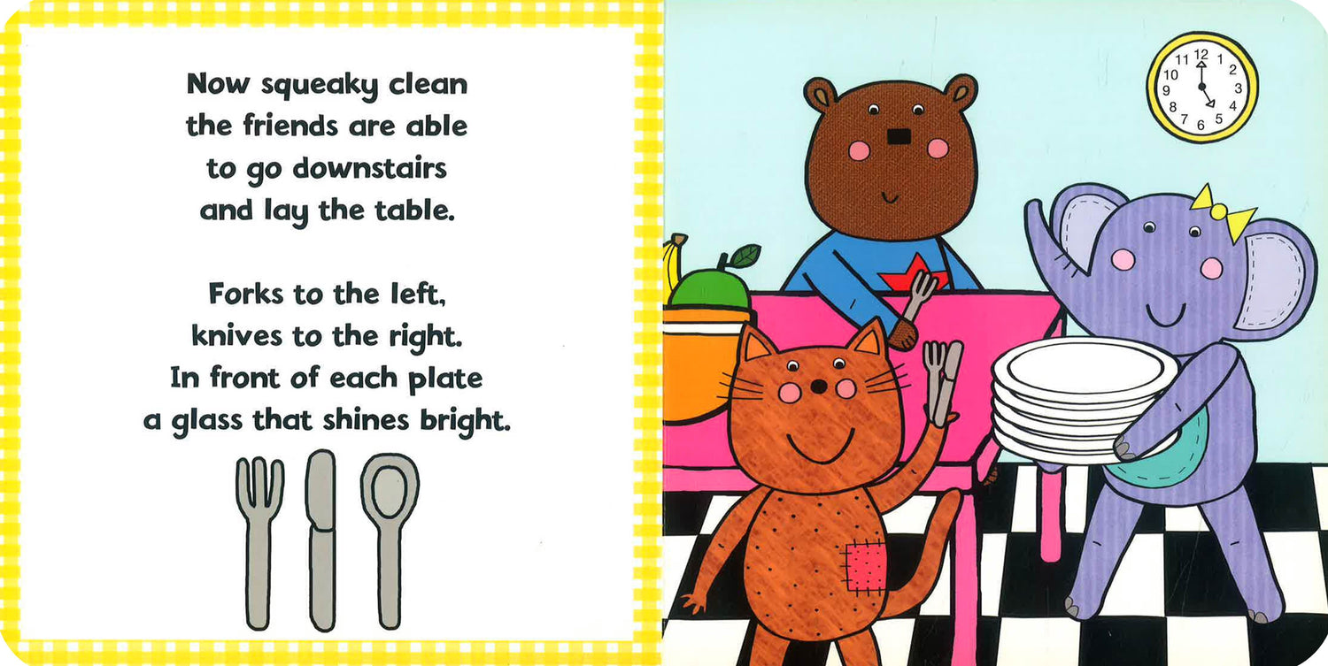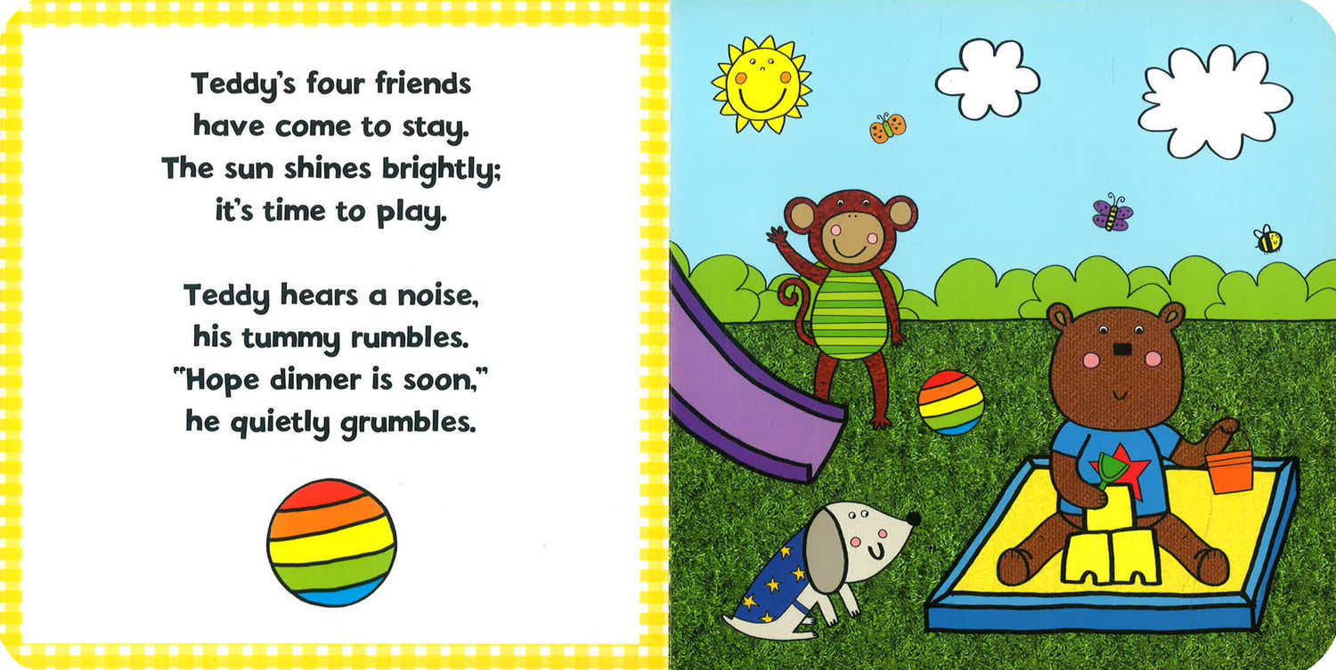 Simple rhymes take you through Teddy's bath time, bedtime, mealtime and playtime routines with a scented surprise at the end. Charming illustrations accompanied by simple text, introduce everyday activities and encourage good habits and manners, while the scented page helps to engage young readers. These are books for toddlers and parents to share.