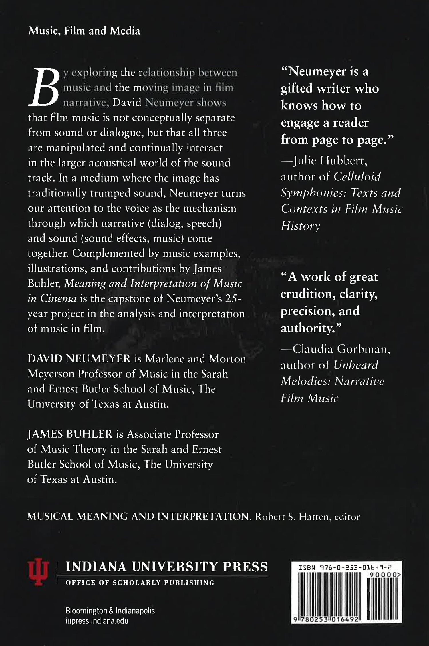 By exploring the relationship between music and the moving image in film narrative, David Neumeyer shows that film music is not conceptually separate from sound or dialogue, but that all three are manipulated and continually interact in the larger acoustical world of the sound track. In a medium in which the image has traditionally trumped sound, Neumeyer turns our attention to the voice as the mechanism through which narrative (dialog, speech) and sound (sound effects, music) come together. Complemented by music examples, illustrations, and contributions by James Buhler, Meaning and Interpretation of Music in Cinema is the capstone of Neumeyer's 25-year project in the analysis and interpretation of music in film.