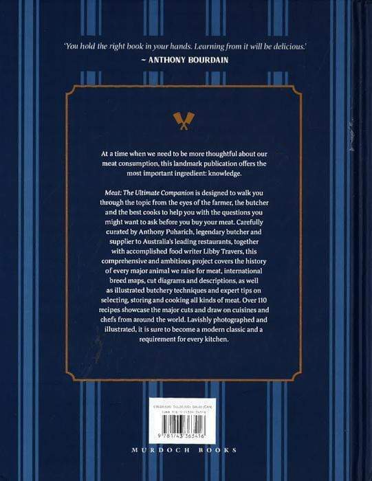 Meat: The Ultimate Companion is designed to walk you through the topic from the eyes of the farmer, the butcher and the best cooks to help you with the questions you might want to ask before you buy your meat. Carefully curated by Anthony Puharich, legendary butcher and supplier to Australia's leading restaurants, together with accomplished food writer Libby Travers, this comprehensive and ambitious project covers the history of every major animal we raise for meat, international breed maps, cut diagrams and descriptions, as well as illustrated butchery techniques and expert tips on selecting, storing and cooking all kinds of meat. Over 110 recipes showcase the major cuts and draw on cuisines and chefs from around the world. Lavishly photographed and illustrated, it is sure to become a modern classic and a requirement for every kitchen.