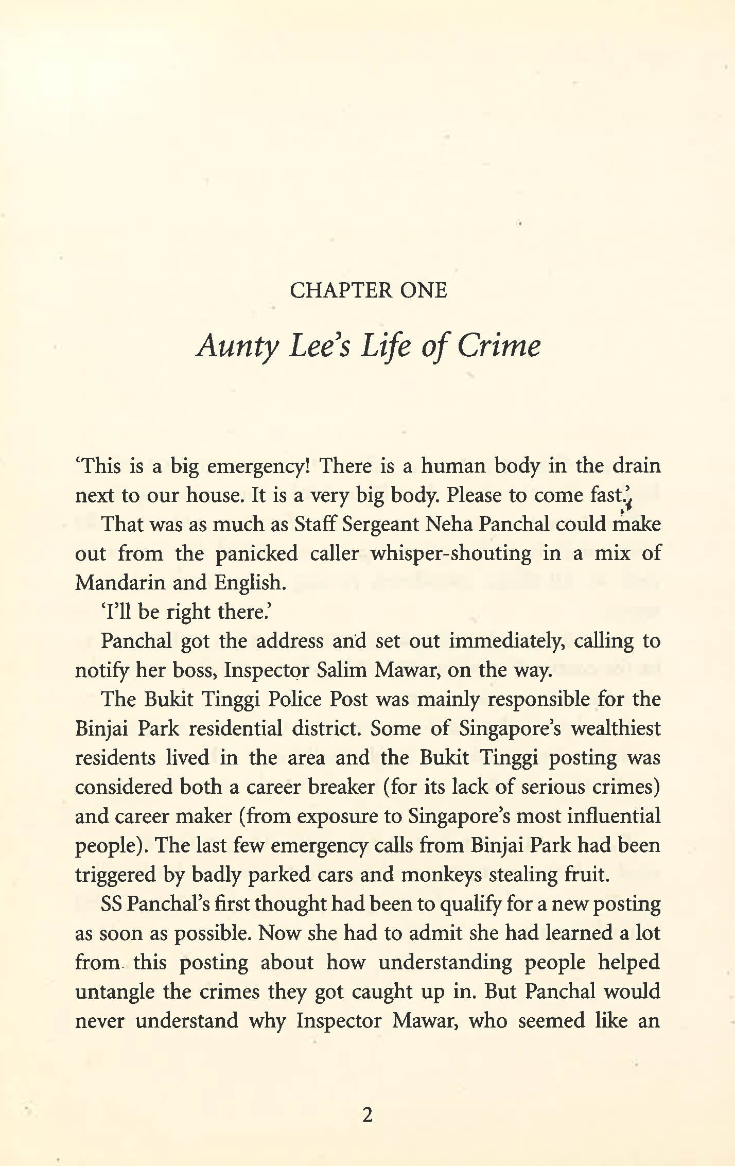 There is nothing Rosie `Aunty' Lee, amateur sleuth and proprietor of Singapore's best-loved restaurant, loves more than solving other people's problems. So when Beth Kwuan, an ambitious businesswoman, tells Aunty Lee her maid has disappeared, Aunty Lee is happy to let her own maid, Nina, help.