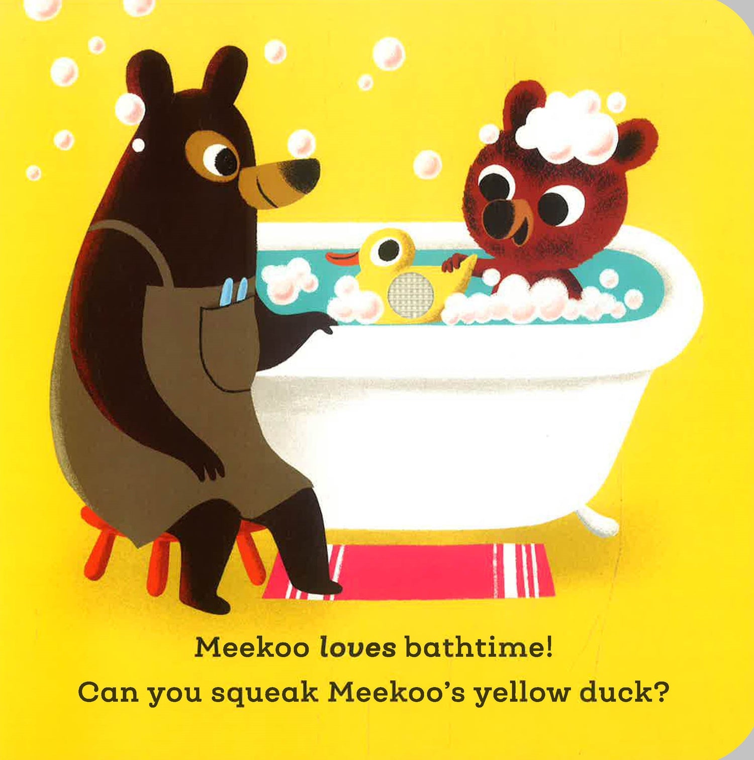 A charming and funny sound-button story that's perfect for bedtime. After a bath with a squeaky duck, and some noisy tooth-brushing, Meekoo heads to bed. But it's soon clear that Blue Bunny has disappeared . . . what will Meekoo do then? This funny sound-button story is perfect for sharing with little ones before bed. Toddlers will love pressing the sound buttons and joining in with the funny snorey ending! Also available: Meekoo and the Big Red Potty, Meekoo and the Little Nursery