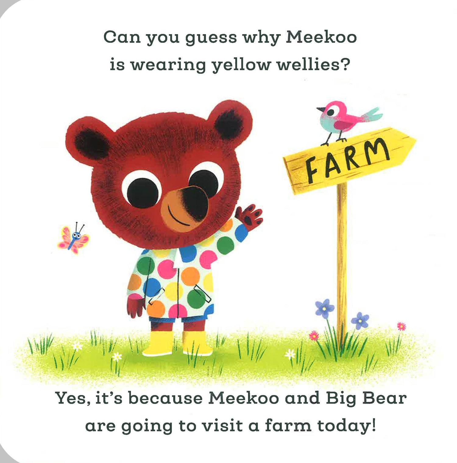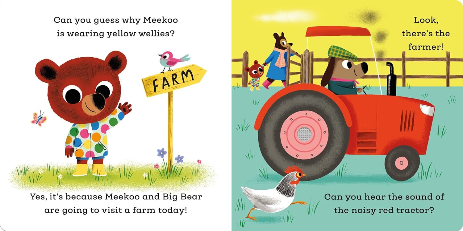 A charming sound-button storybook for toddlers! Meekoo is going to the farm today and there's just so much to do! Meekoo hears the chugging tractor and feeds the thirsty lamb, then it's off to the field to see the mooing cows. All little readers will love seeing Meekoo's yellow welly get stuck in the mud - and hearing the funny squelchy sound it makes! With five sound-buttons to push, colours to spot and a gentle lesson about resilience. Also available: Meekoo and the Big Red Potty, Meekoo and the Little Nursery, Meekoo and the Bedtime Bunny