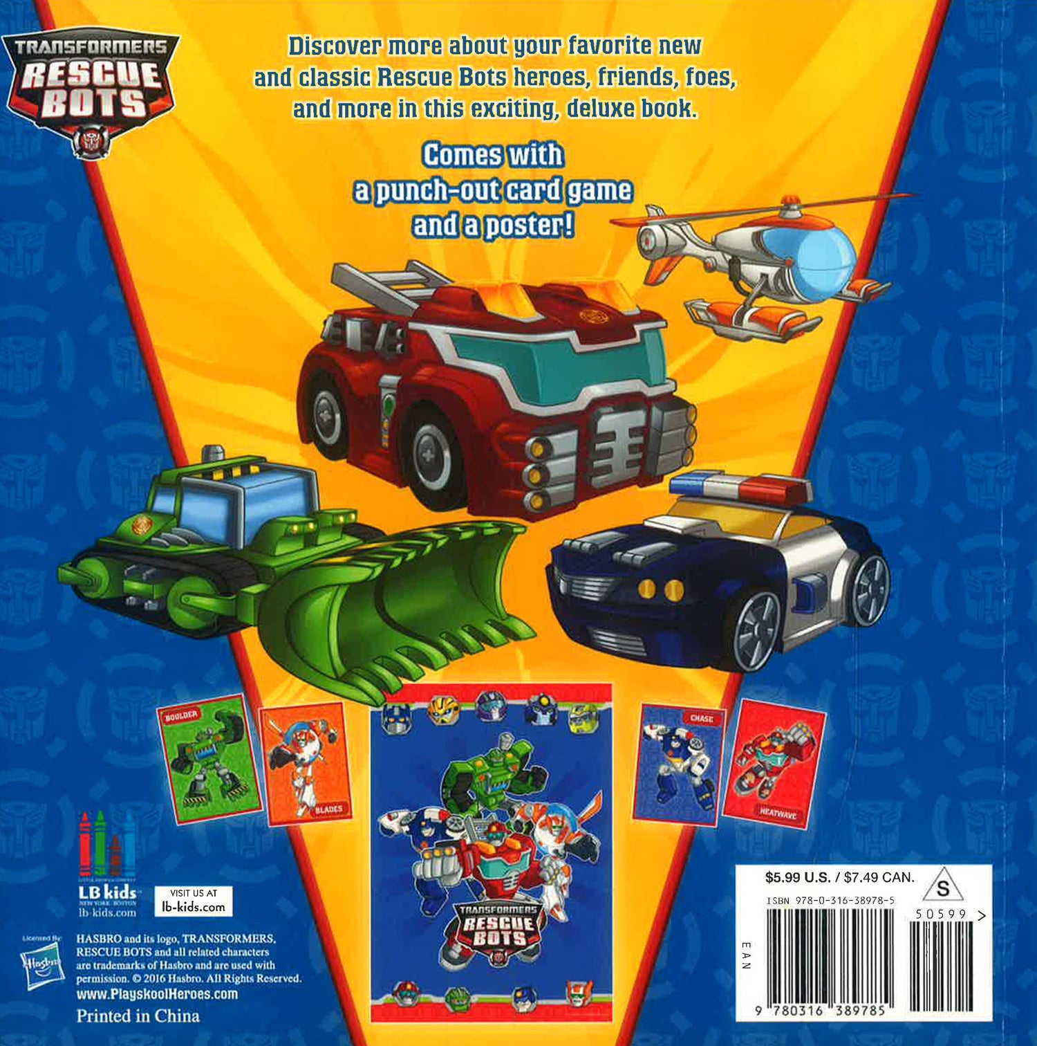 Find out all about new and old Transformers Rescue Bots heroes, friends, foes, and more, in this exciting deluxe book. It even includes new recruits Servo, Salvage, and Blurr!