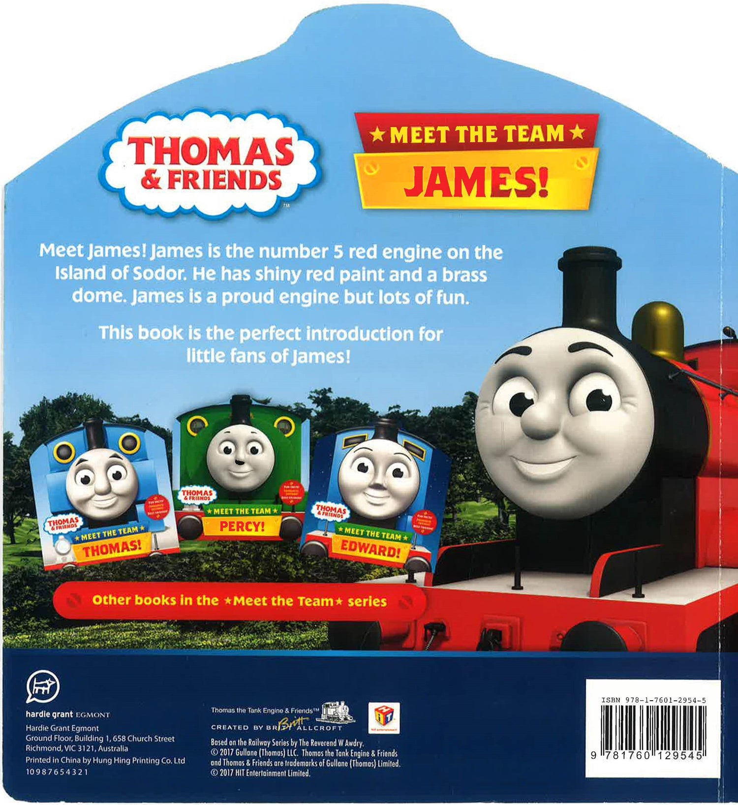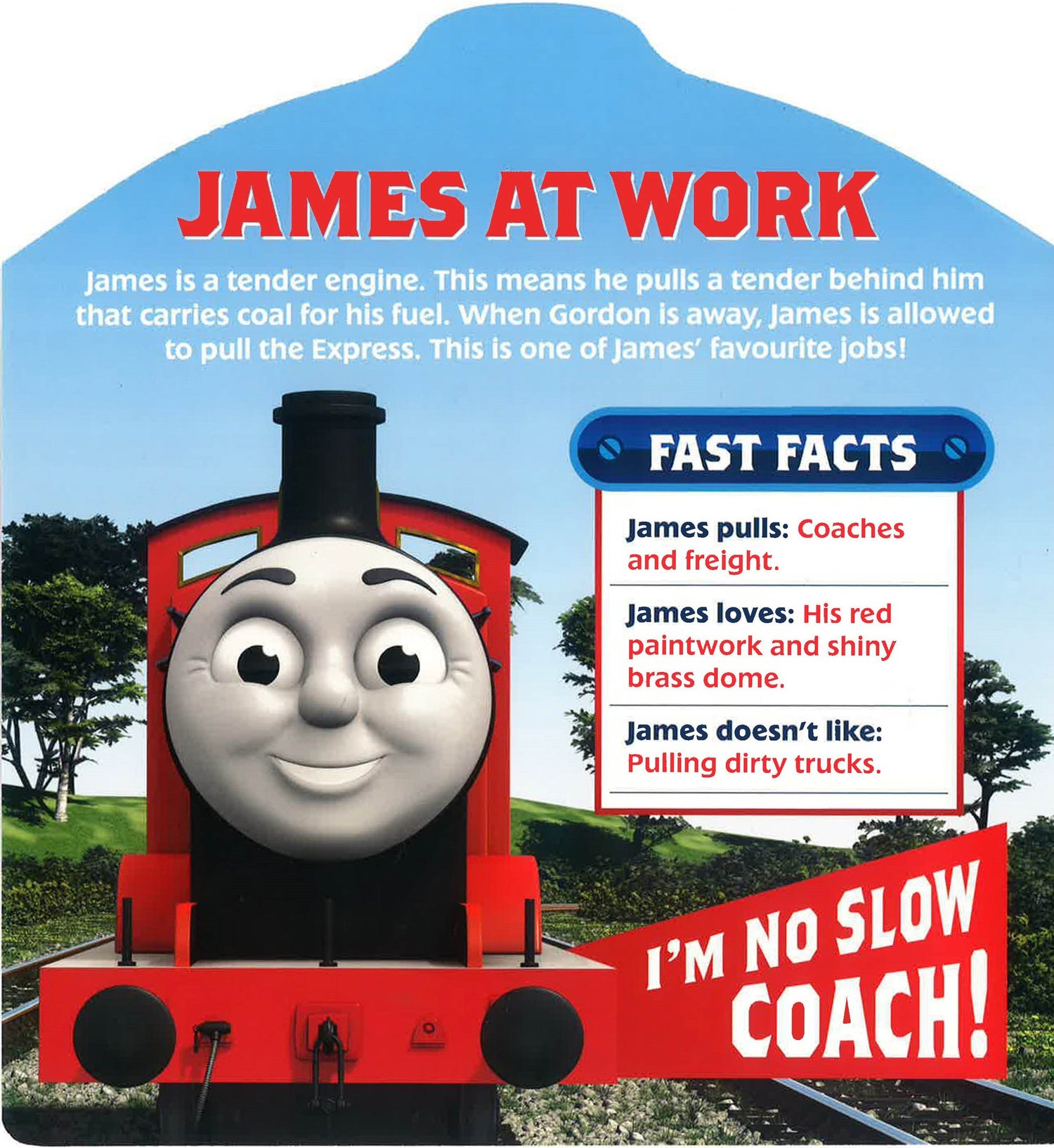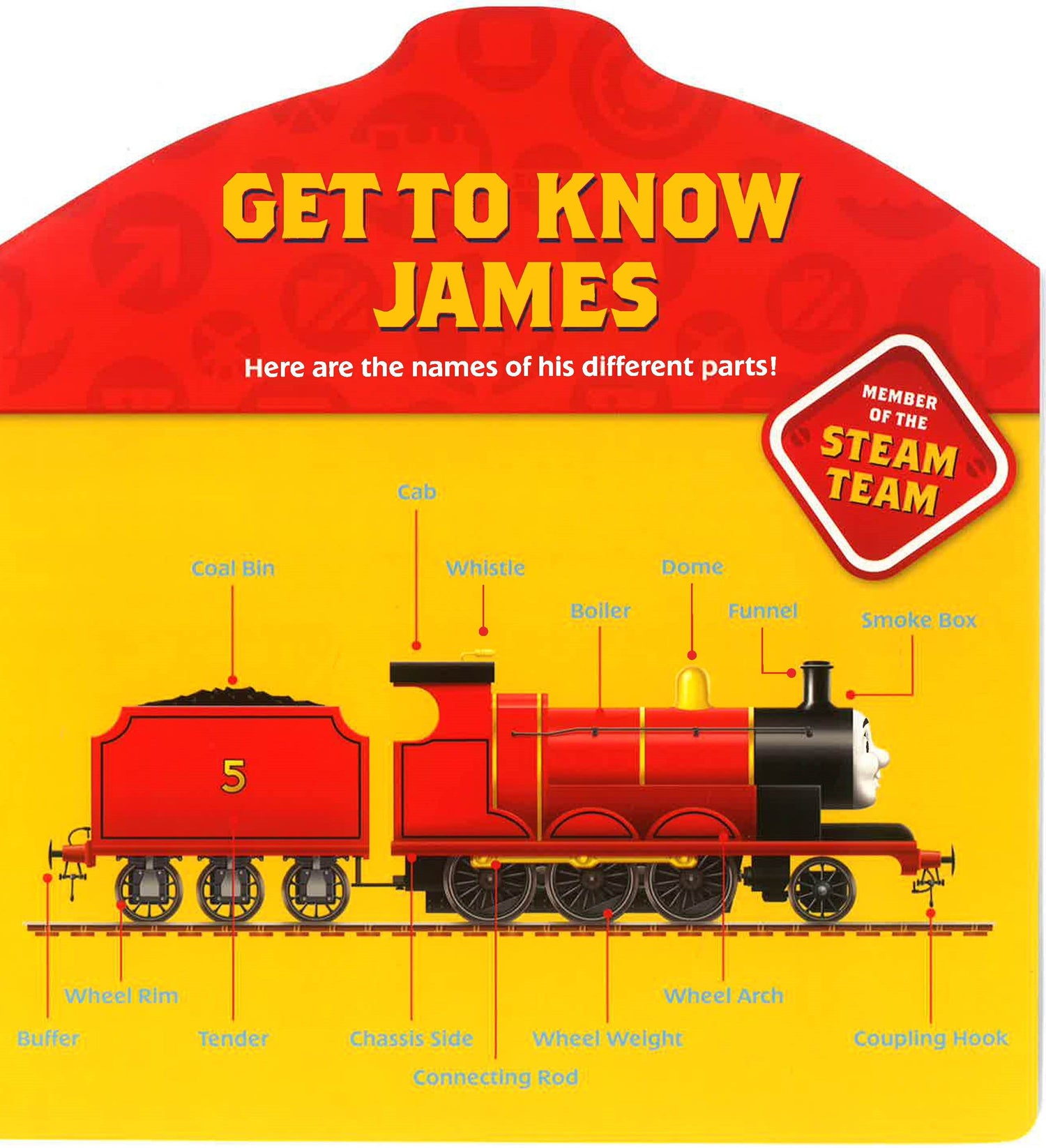 Meet James! James is the number 5 red engine on the Island of Sodor. He has shiny red paint and a brass dome. James is a proud engine but lots of fun. This book is the perfect introduction for little fans of James!