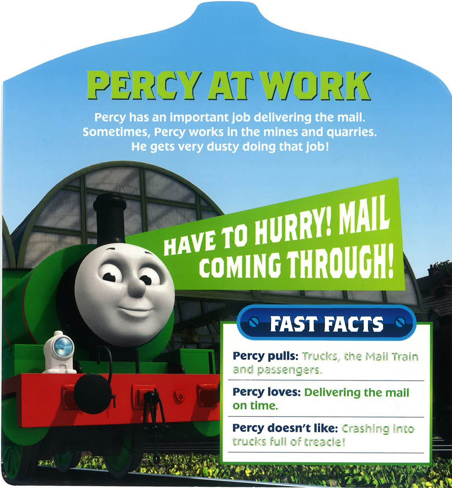 Meet Percy! Percy is the number 6 green engine on the Island of Sodor. He is Thomas' best friend, and is always happy to help the other engines. This book is the perfect introduction for little fans of Percy!